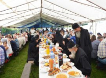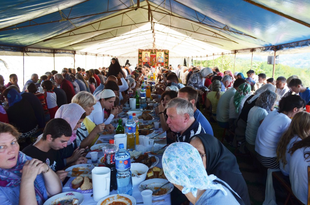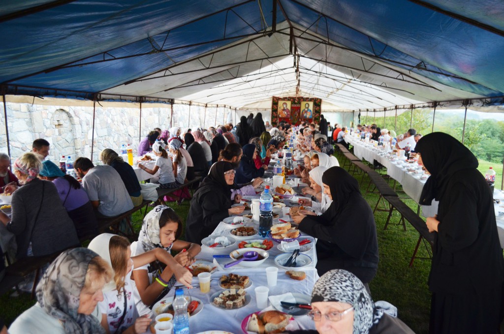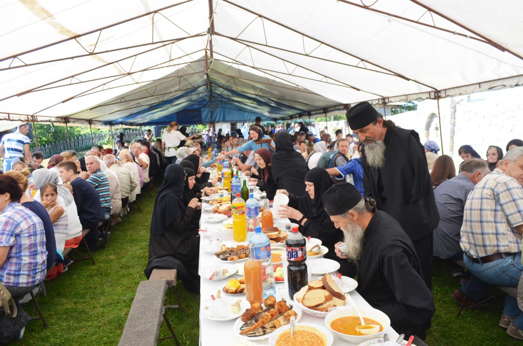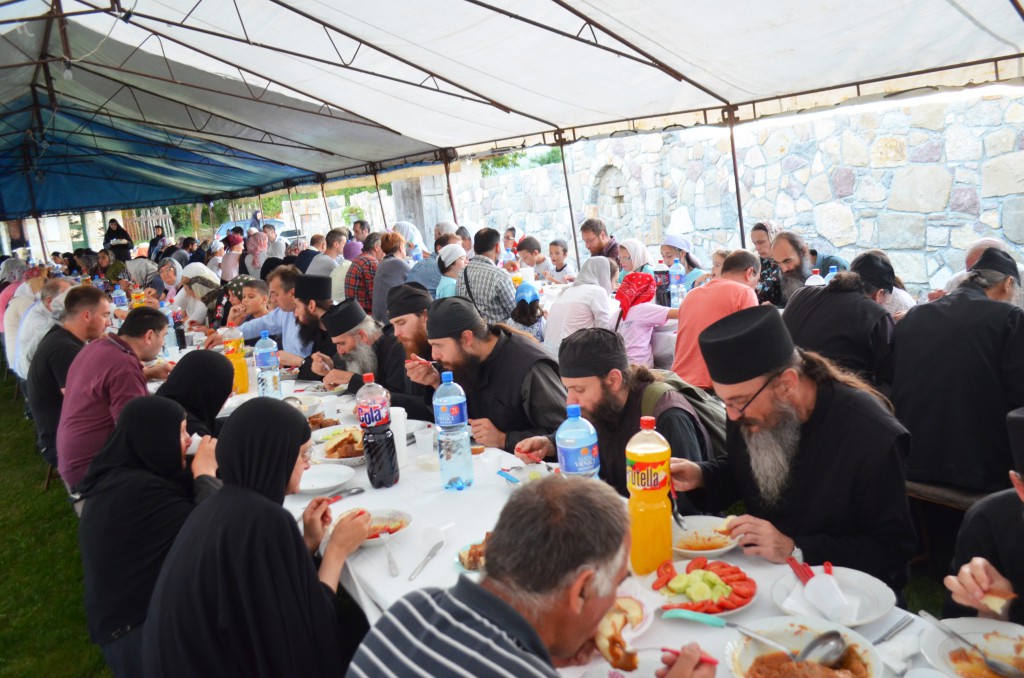 Након Свете Литургије уприличена је, од стране манастирског сестринства и овогодишњих домаћина, трпеза љубави за све присутне. Том приликом су сестре манастира извеле пригодни програм посвећен Пресветој Богомајци.