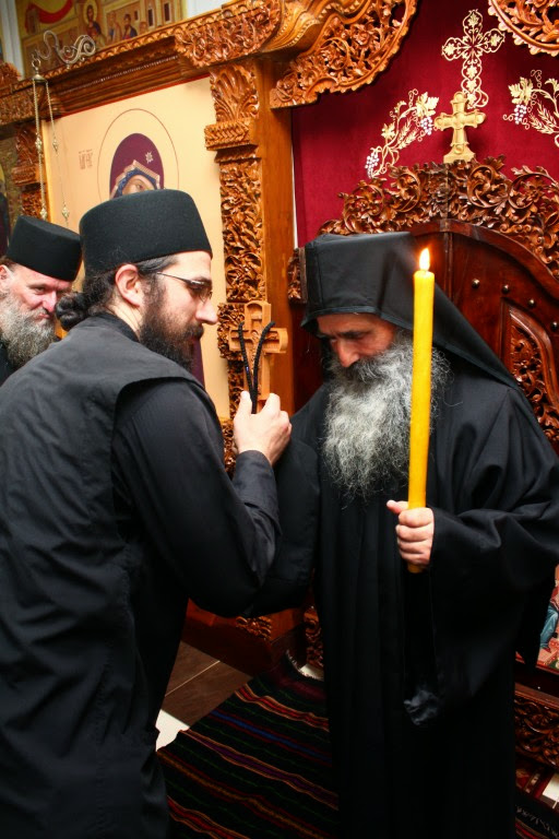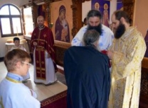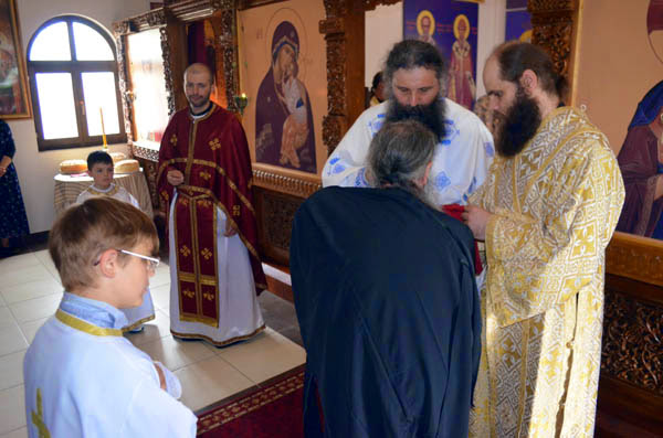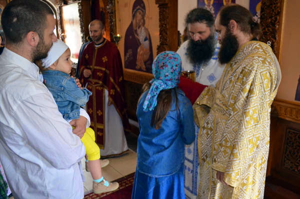 Новопострижени монах Јустин се причестио Светим Тајнама Христовим, а уједно и прославио свој први имендан.