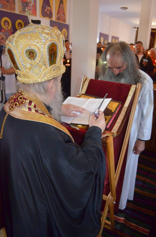 Уочи празника Светог Јустина Ћелијског у Барајеву, на крају вечерњег богослужења, Његово Преосвештенство Епископ рашко-призренски у Егзилу Г.Г Артемије, замонашио је у чин мале схиме искушеника Радивоја, који је добио монашко име Јустин. Овом свечаном чину присуствовало је доста верника, монаха и монахиња. Након монашења Владика се обратио новопостриженом оцу Јустину следећим речима: