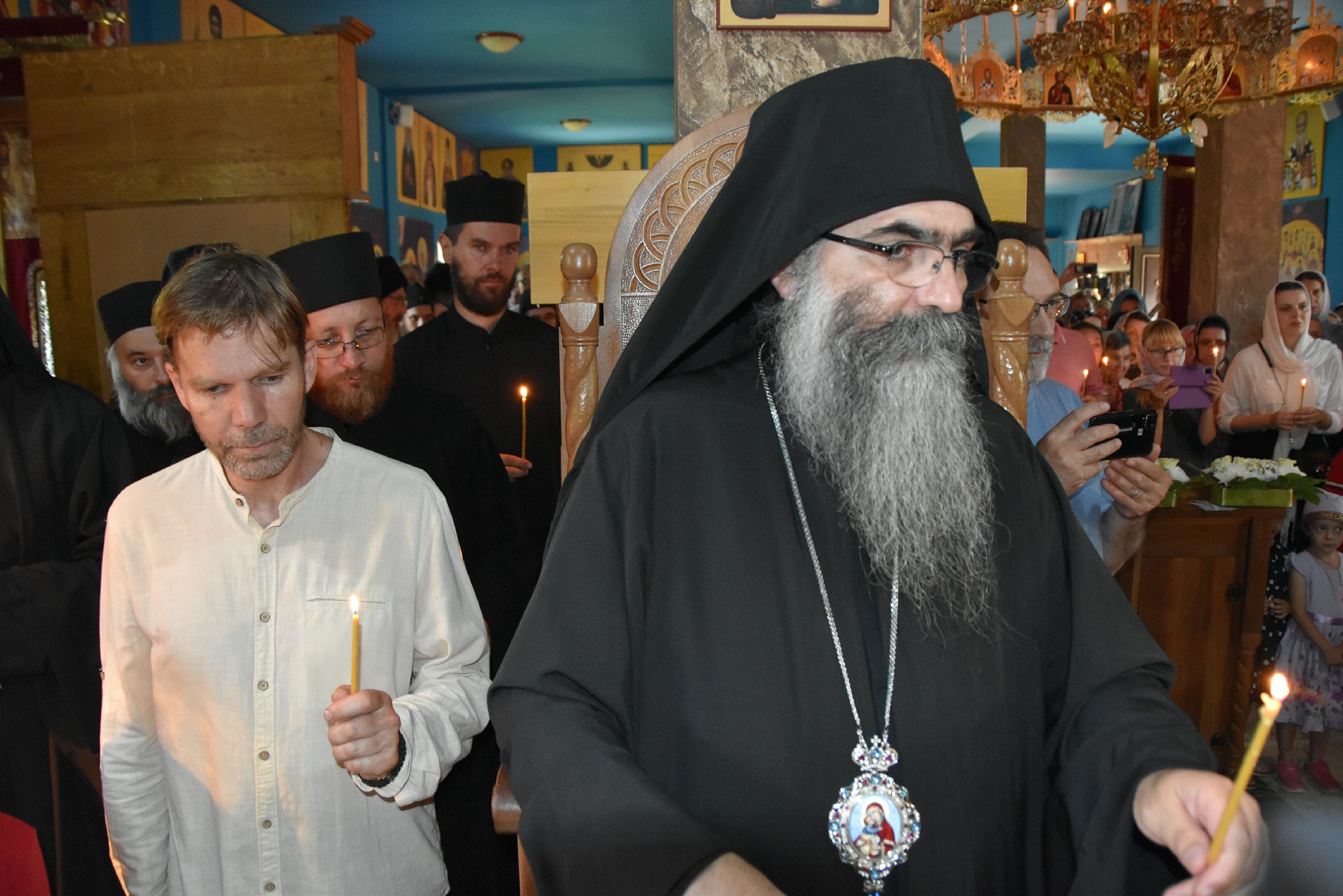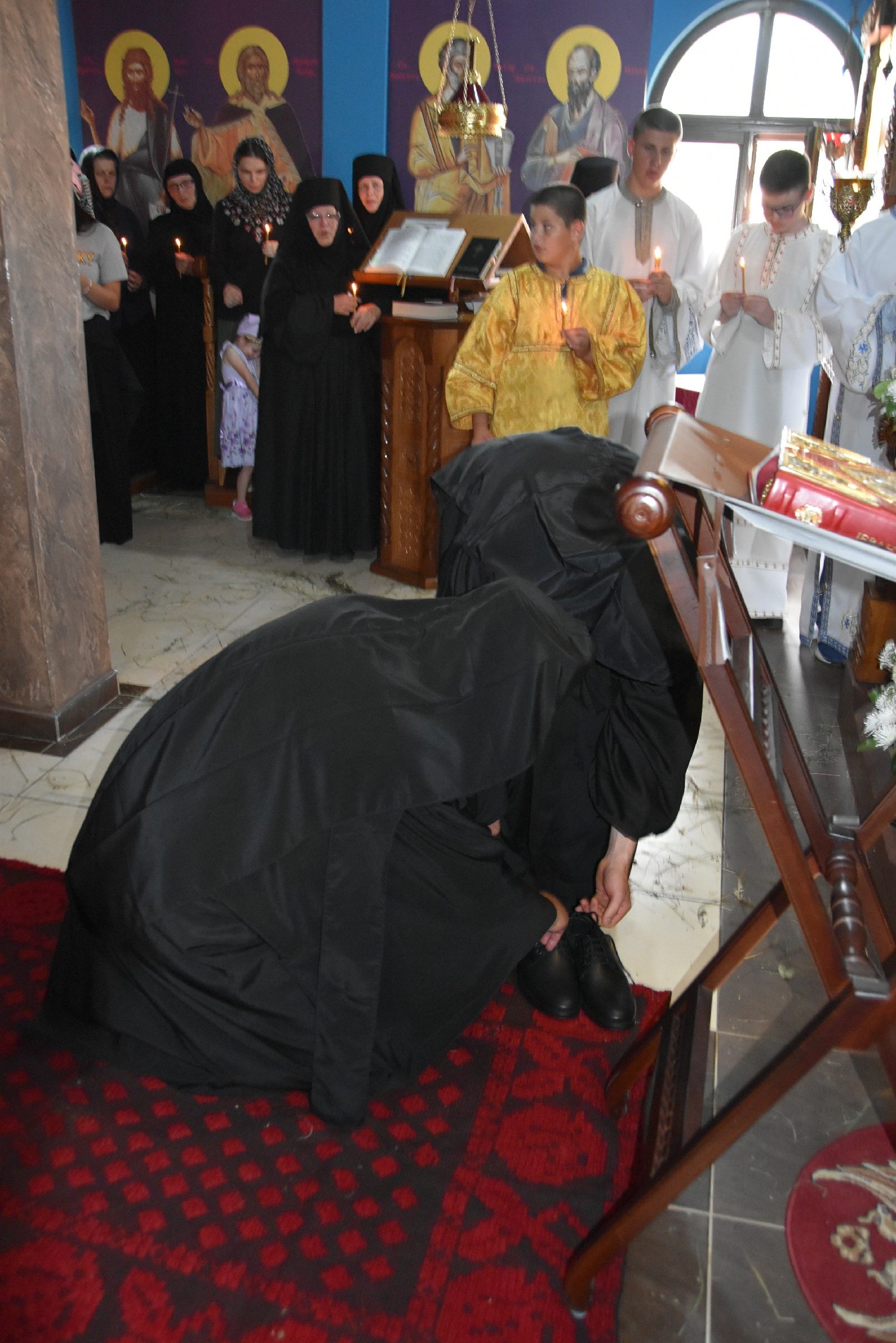 „Помолимо се и ми, браћо и сестре, за брата нашега монаха Лонгина да као што је Лонгин видећи она чудесна дешавања под крстом Господњим, паде на кољена своја и рече: „Да заиста човјек овај Син Божји бијаше“, да тако и оцу Лонгину да снаге да исповједа вјеру своју у Сина Божијега, да исповједа вјеру своју у Крст Христов, да исповједа вјеру своју у васкрсење Христово и да буде судионик и сапричасник оних дивних и великих Педесетничких дарова, да Господ Исус Христос посла Духа Свога Светога на своје свете апостоле и ученике, да Га посла на све нас да Њиме живимо, да Њиме дјелујемо, да се Њиме спасавамо и данас и у све дане живота свога. Амин. Боже дај“.