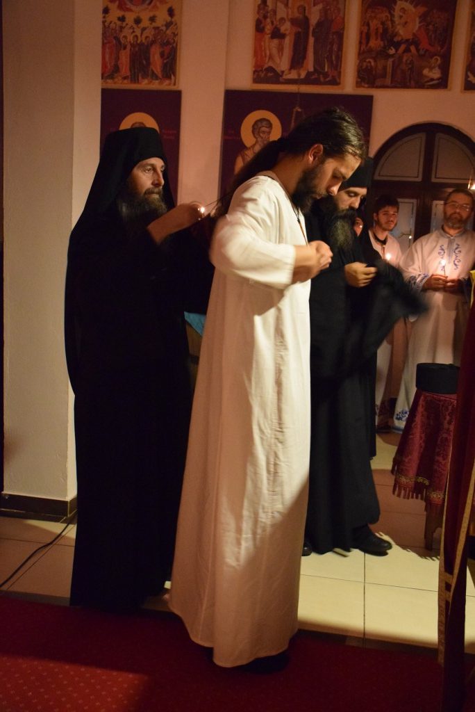И сигурно, милошћу Божјом и заступништвом светог Симеона Мироточивог Немање, да је он кренуо овим уским путем који води у Царство небеско. Он је чуо призив Божји у срцу своме, разумео је речи „ко хоће замном да иде нека се одрекне себе“. И он је, иако млад годинама, примио те речи Христове у своје срце и оставио све у свету као што каже Јеванђеље: „И оца и мајку и браћу и сестре“, и све, каријеру своју, све што је могао бити у овом животу он је то оставио принео Христу Богу ради Царства небескога. И зато искушавао се три године у овоме светом манастиру Преподобног Јустина, имајући и њега за пример монашког живота. И ево благодаћу Божјом он се удостојио да дочека овај дан и овај час, да оствари жељу срца свога да се уврсти у ред монаха.