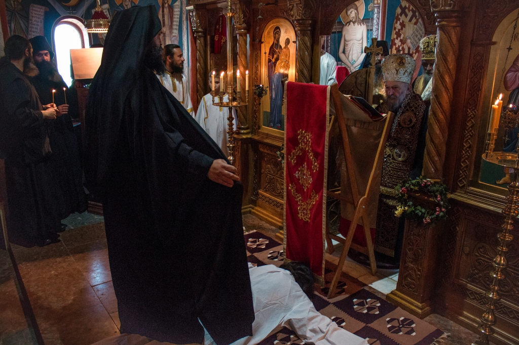 “Чули сте вечерас нашега брата и оца Лазара које је завете дао Богу. Ти завети нису нимало лаки. То сте схватили, али и он је свестан тога. И зато је на свако питање одговарао: „Да с Божијом помоћи“, а не као што ми у животу обично чинимо – „добро“, „ја хоћу“, „ја могу“ и тако даље. Не, него само са Божијом помоћи. Јер заиста, човек сам са својим снагама људским није у стању да све ово испуни што је отац Лазар вечерас обећао пред Богом. Али са Божијом помоћи могуће је све као што каже свети апостол Павле: „Све могу у Христу Исусу који ми моћи даје.“