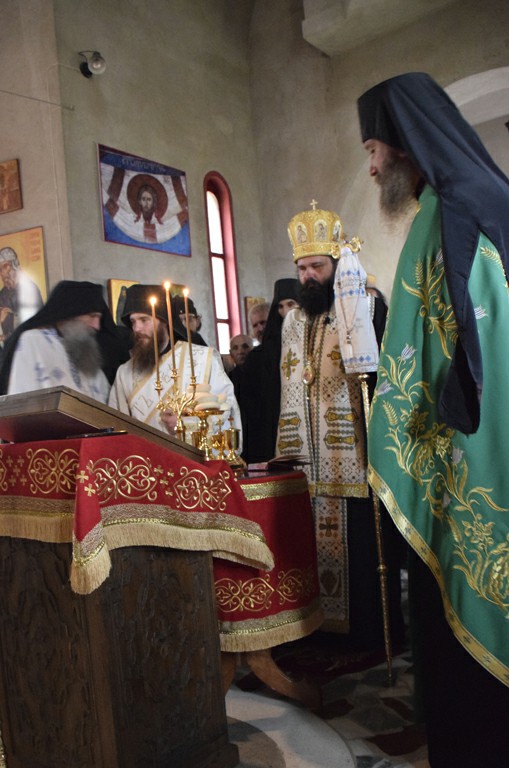 У монашком чину између осталог смо чули речи које су упућене новопостриженом монаху оцу Неофиту и свима монасима да ће у овоме свету бити гоњен, бити вређан и понижаван. То управо описује пут Цркве којим она у овоме свету иде. Монашки живот је заправо савршени јеванђелски живот, а тиме живот који проходи управо тај страдални, крстоносни, али и васкрсни пут којим читава Црква иде. Иако је монашки живот тежак, није лак, то смо чули у данашњем чину монашком, Господ своје слуге, посебно монахе, крепи Својом благодаћу, Својим благодатним силама. На тај исти начин Он крепи и читаву Цркву Своју, крепи и нашу Епархију тиме што, иако је она гоњена, унижавана, прогоњена, она духовно рађа, духовно се разраста, а посебна вредност у њој јесте то умножавање монашког чина, монашког лика. И ево број монаха у нашој eпархији се вечерас умножио, повећао се за још једног нашег сабрата, саборца на том духовном фронту на коме смо данас принуђени не само да чувамо и спасавамо нашу душу, већ и да чувамо, очувавамо и боримо се за Веру Православну, за Цркву Христову”, нагласио је Владика.