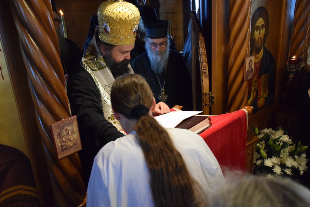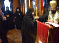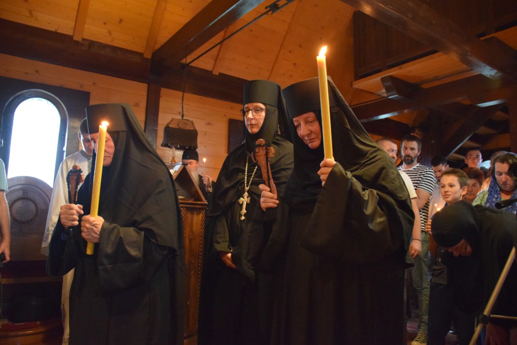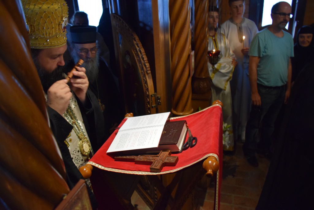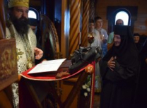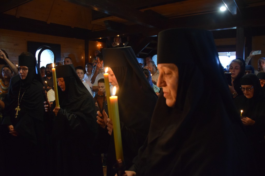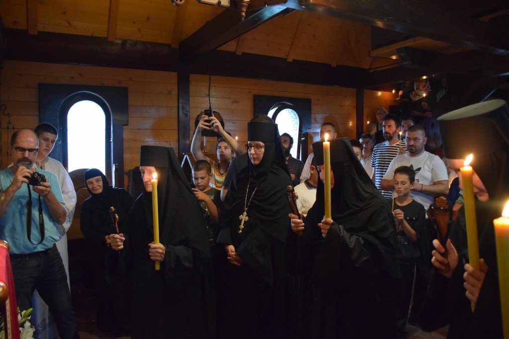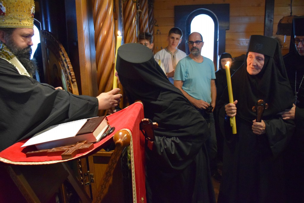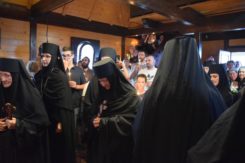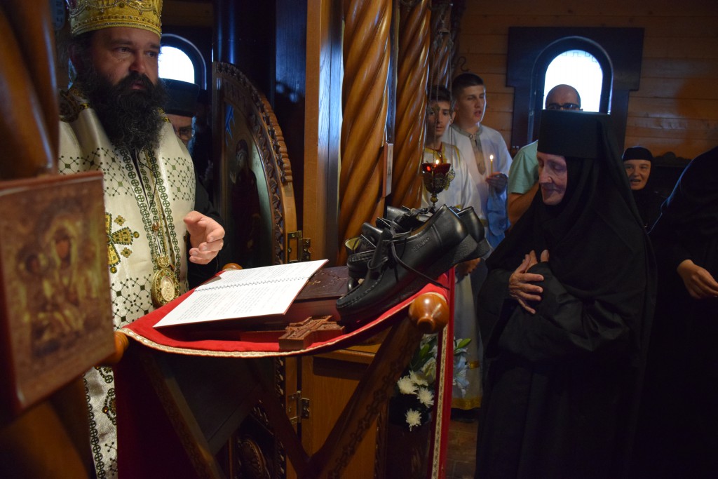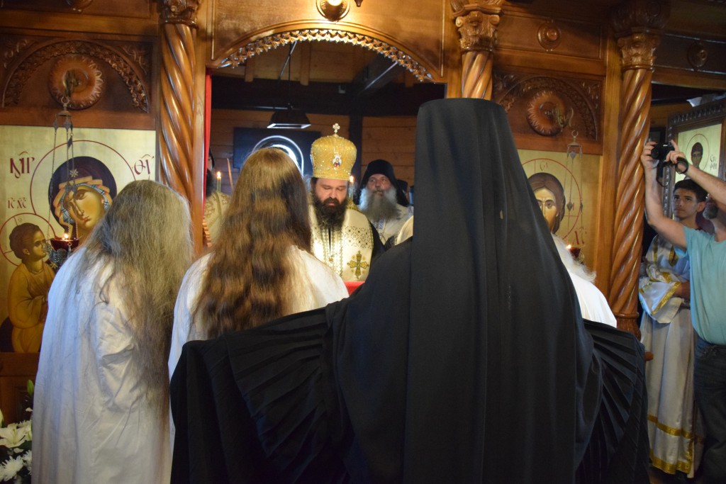 “Сви смо ми дали завјете у крштењу своме, оне вечерас поновише да као монахиње испуне те хришћанске завјете, да их испуне до савршенства, јер управо то је циљ монашкога живота – испунити све хришћанске завјете до савршенства, испунити ону заповјест Господњу: „Будите савршени као што је савршен Отац ваш Небески“. Нека и новопострижене монахиње помену нас све у молитвама својим, а ми њих да поменемо да им Господ буде на помоћи, да им Пресвета Мајка Божја коју вечерас прослављамо и сутра прослављамо у овом дивном празнику буде помоћница, буде учитељица у свему доброме, у свему побожноме, у свему што нас уводи у Царство Небеско. Амин. Боже дај.“