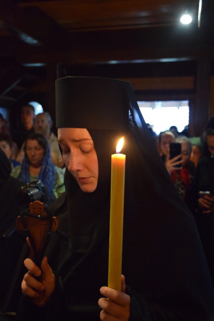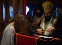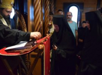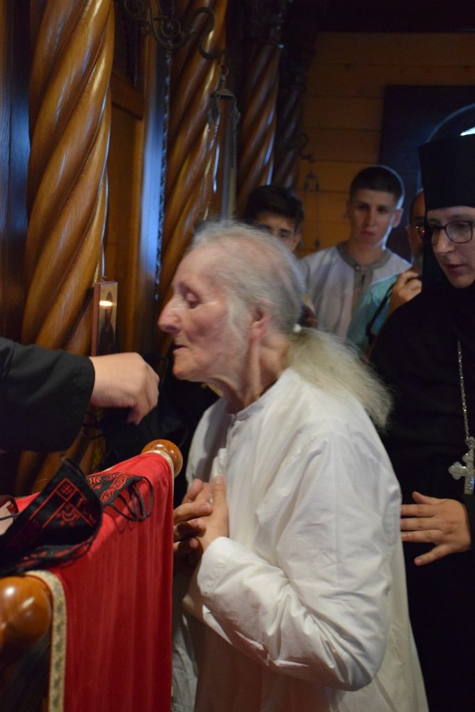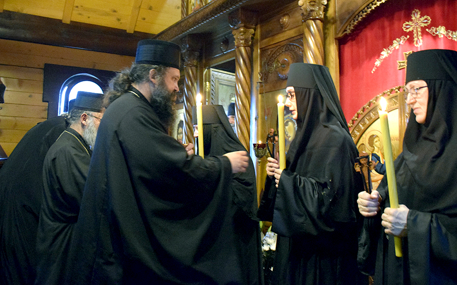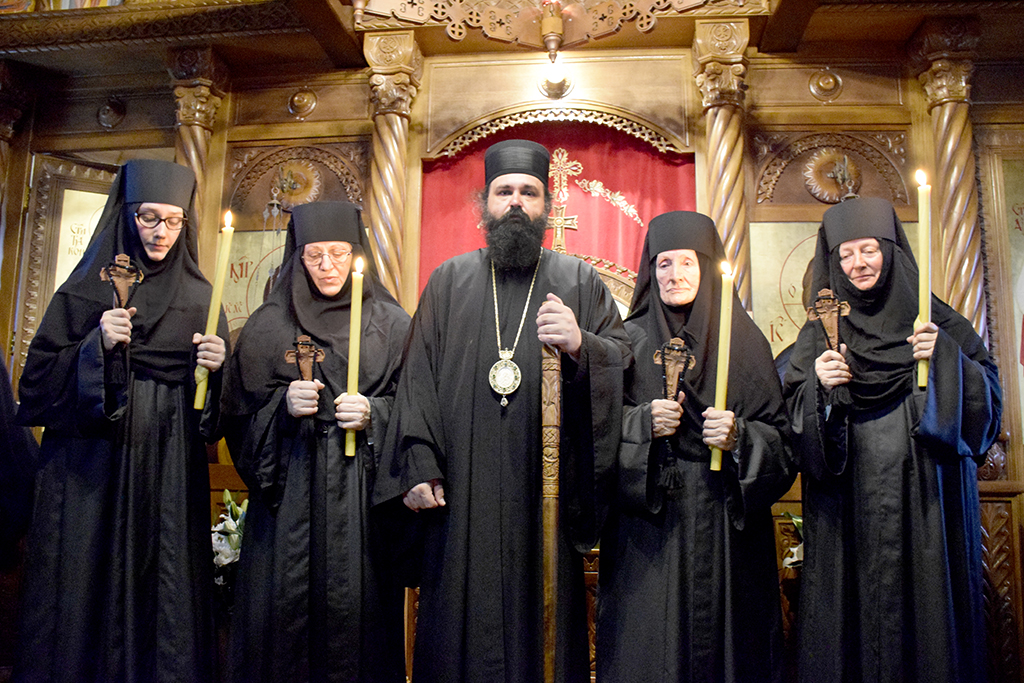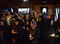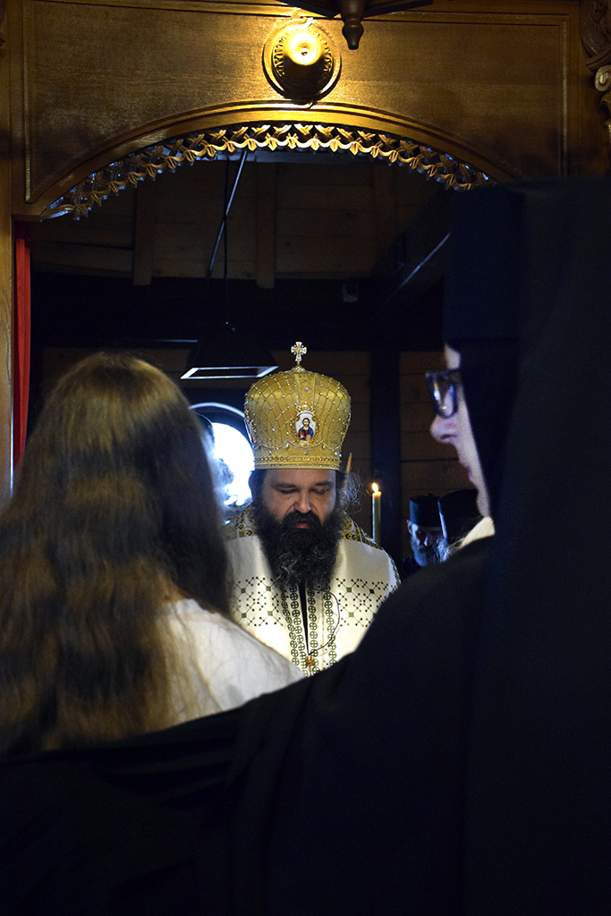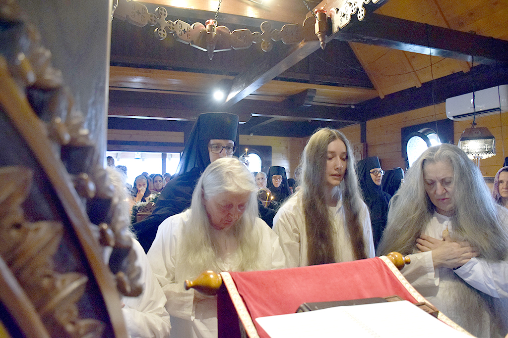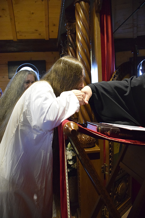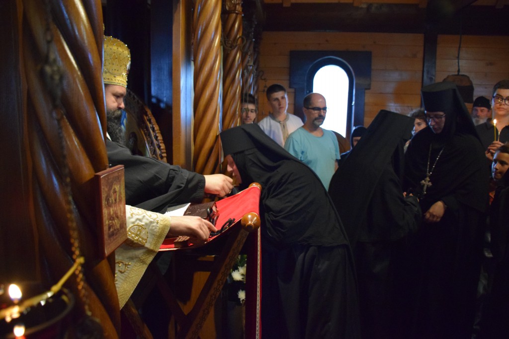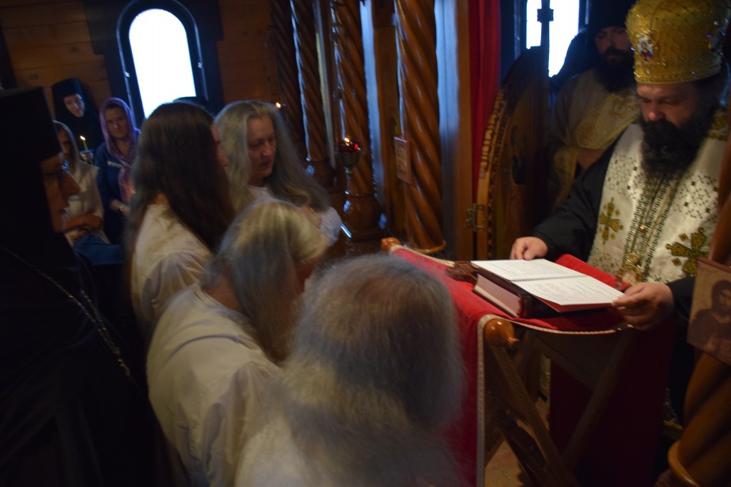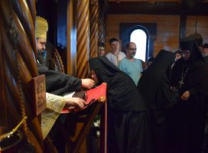 “Сви смо ми дали завјете у крштењу своме, оне вечерас поновише да као монахиње испуне те хришћанске завјете, да их испуне до савршенства, јер управо то је циљ монашкога живота – испунити све хришћанске завјете до савршенства, испунити ону заповјест Господњу: „Будите савршени као што је савршен Отац ваш Небески“. Нека и новопострижене монахиње помену нас све у молитвама својим, а ми њих да поменемо да им Господ буде на помоћи, да им Пресвета Мајка Божја коју вечерас прослављамо и сутра прослављамо у овом дивном празнику буде помоћница, буде учитељица у свему доброме, у свему побожноме, у свему што нас уводи у Царство Небеско. Амин. Боже дај.“