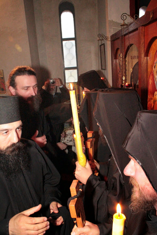 Те вечери на празничном богослужењу, Његово Преосвештенство, Епископ рашко-призренски у егзилу, Артемије, замонашио је четворицу искушеника: Јована Банкова, Оливера Ђурђева, Дејана Матијашевића и Јована Ердељана. Ови искушеници су своје искушеничке дане започели и највећим делом провели у манастирима Епархије рашко-призренске, тројица њих у Црној Реци, а искушеник Оливер у Сопоћанима. Новонастале околности у Епархији и уопште у Српској Православној Цркви њих су са осталом братијом одвеле у катакомбе и новоосноване манастире, тј. у Љуљаке, Лозницу и на Тари.
