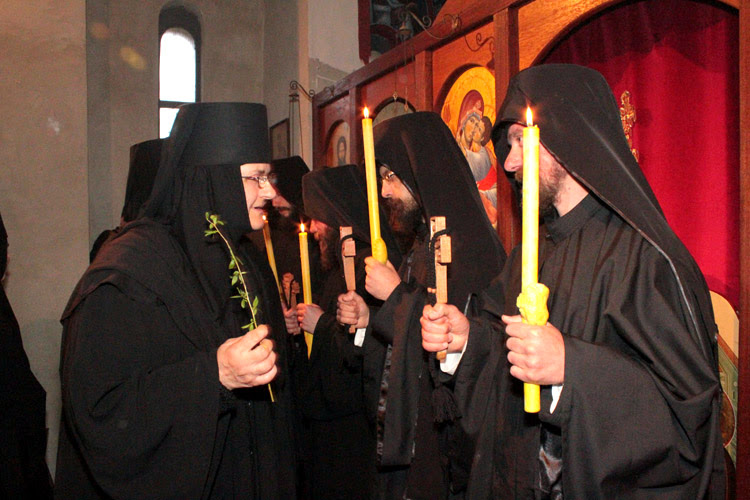 На увек посебно благодатном чину монашења брат Јован Банков добио је монашко име Јелисеј; брат Оливер – Онуфрије, брат Дејан – Партеније; брат Јован Ердељан – Софроније. Духовна радост великог празника Цвети овим чином била је употпуњена, а та радост простире се на сву Цркву Божију по свој Васељени, будући да је овим чином она постала богатија за четири молитвеника пред Господом Богом. Коме нека је због свега и за све слава и хвала.