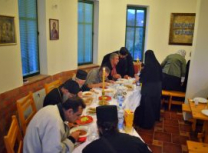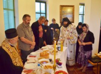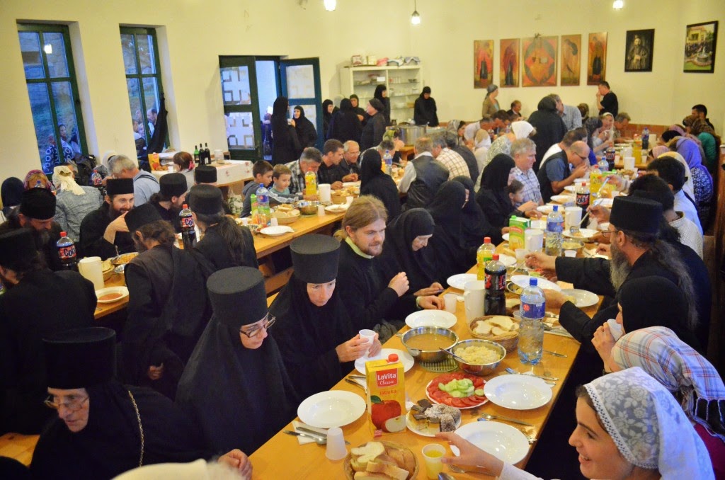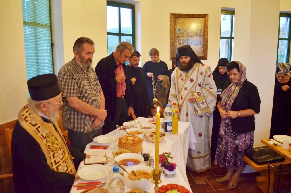 Присутни монаси и верници су се укрепили и телесно на трпези љубави, коју је припремила мати Сара са својим сестрама.