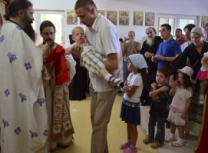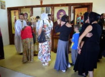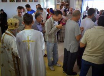 Верни народ се окупио у великом броју да дочека свога Епископа. Епископ Артемије је началствовао Светом Архијерејском Литургијом уз саслуживање протосинђела Варнаве, Иринеја, јеромонаха Јована настојатеља ове Катакомбе, јеромонаха Захарије, као и јерођакона Паладија.