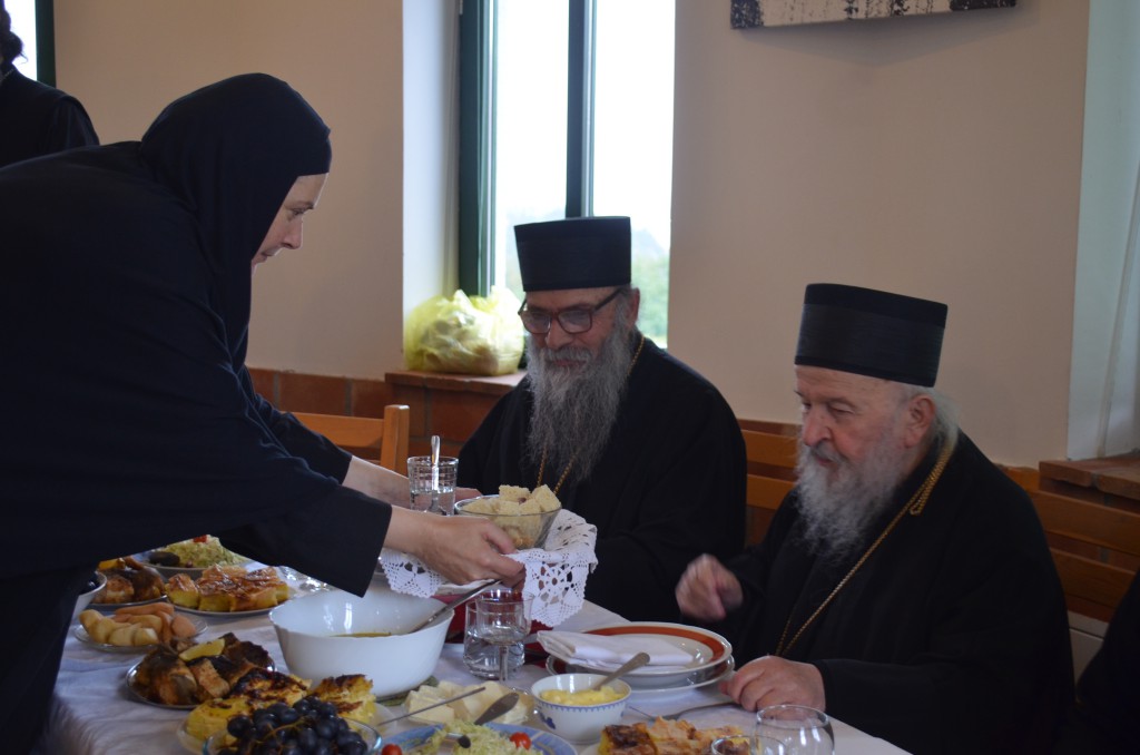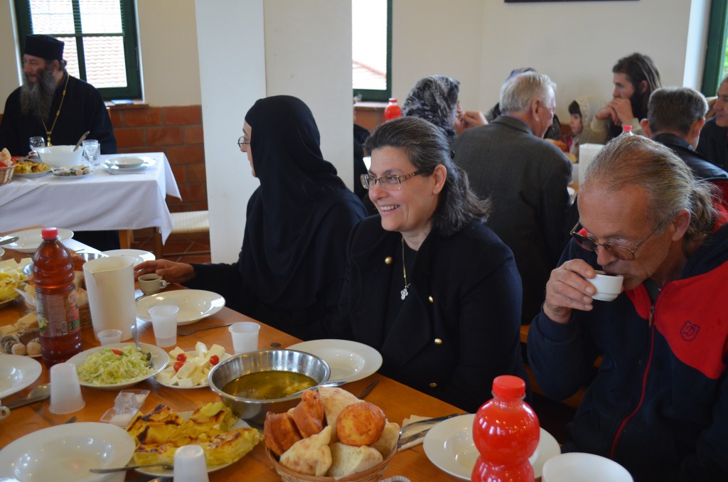 Након Литургије уприличена је од стране манастирског сестринства трпеза љубави за све присутне. За време трпезе сестре су показале своју љубав и гостопримство према гостима отпојавши једну познату грчку родољубиву песму.