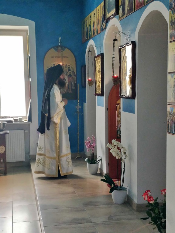 У Недељу 21. по Духовдану, 28. окт./10. новембра, Његово Преосвештенство Епископ рашко-призренски у егзилу Г.Г. Артемије служио је Свету Архијерејску Литургију у манастиру Свих Српских Светитеља у Гринбаху (Аустрија) уз саслужење: архимандрита Варнаве (Димитријевића), протосинђела Димитрија (Ђоковића), протојереја Јарослава Кадила и јерођакона Дионисија (Морачанина). Овом свештеном Литургијском сабрању присуствовало је око стотину верника. Неки од њих су се и причестили Пресветим и Животворним Тајнама Христовим.
