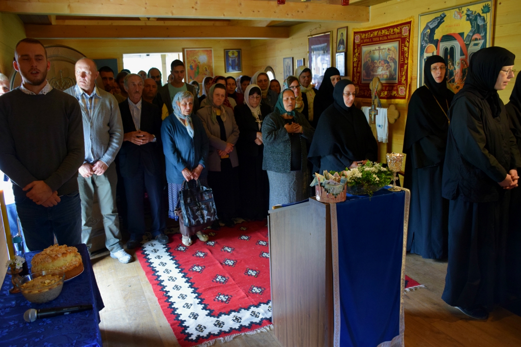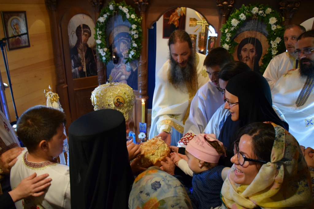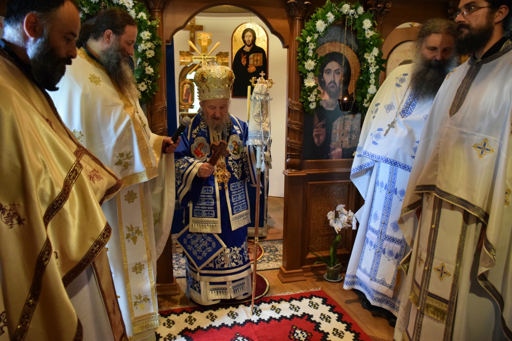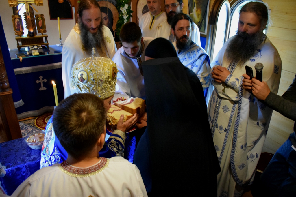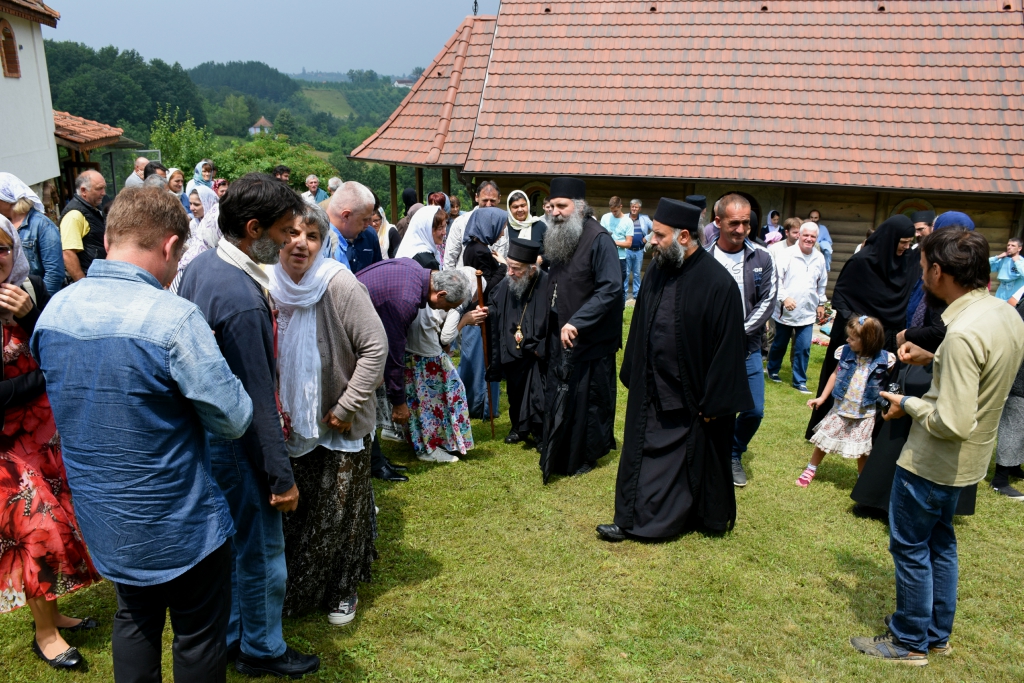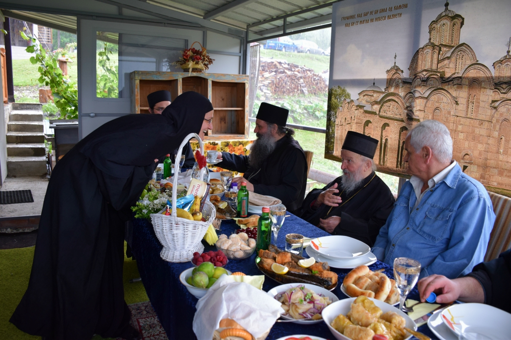 Након Литургије Владика Артемије је извршио чин резања славског колача и благосиљања жита које су у част светих мироносица Марте и Марије принеле монахиња Марија, настојатељица поменутог манастира, и монахиња Марта, настојатељица манастира Свете великомученице Марине у Дудовици.