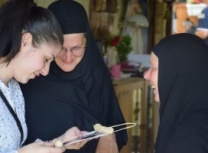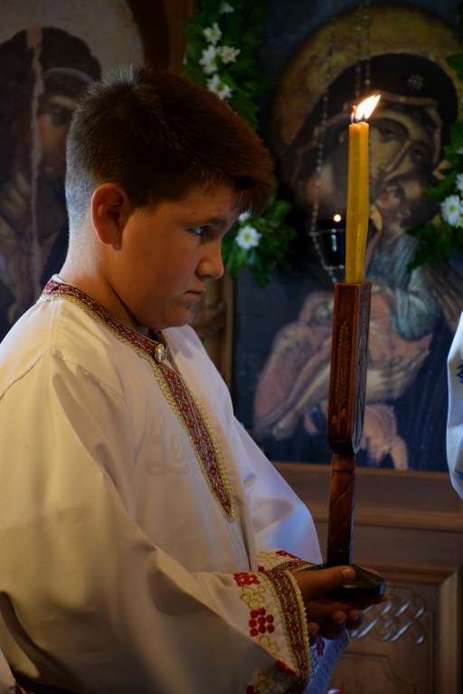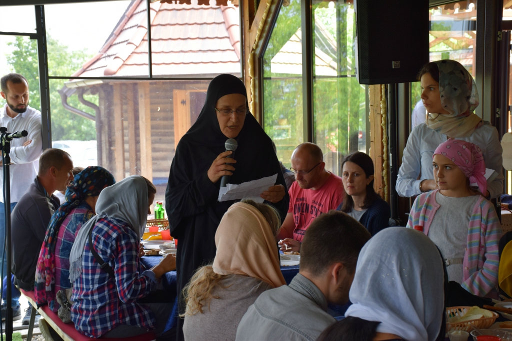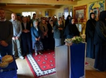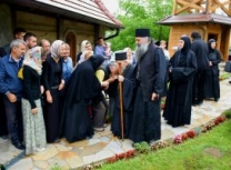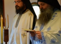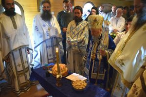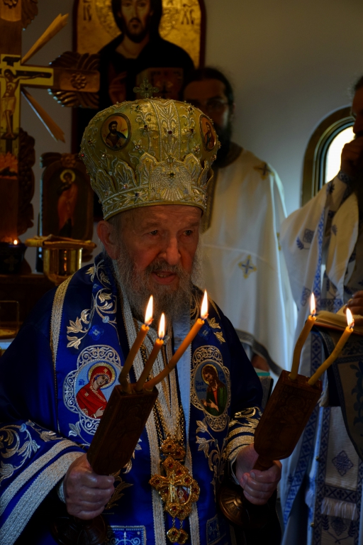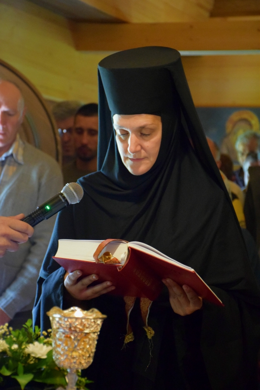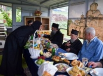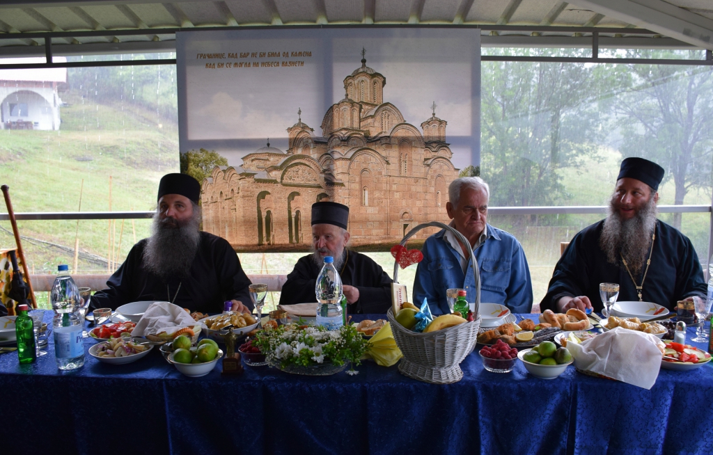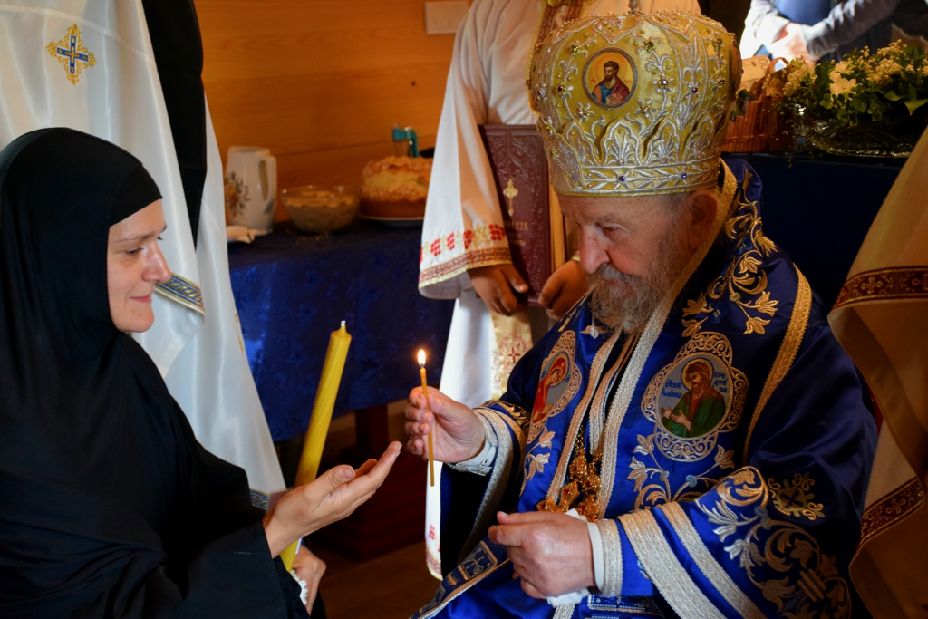 Након Литургије Владика Артемије је извршио чин резања славског колача и благосиљања жита које су у част светих мироносица Марте и Марије принеле монахиња Марија, настојатељица поменутог манастира, и монахиња Марта, настојатељица манастира Свете великомученице Марине у Дудовици.