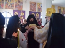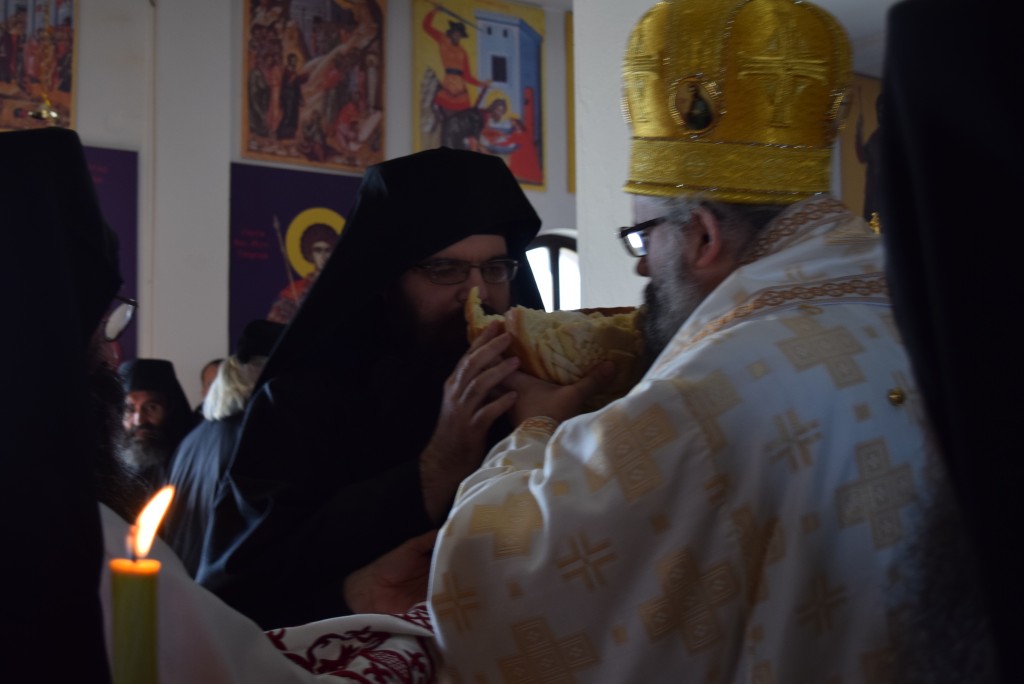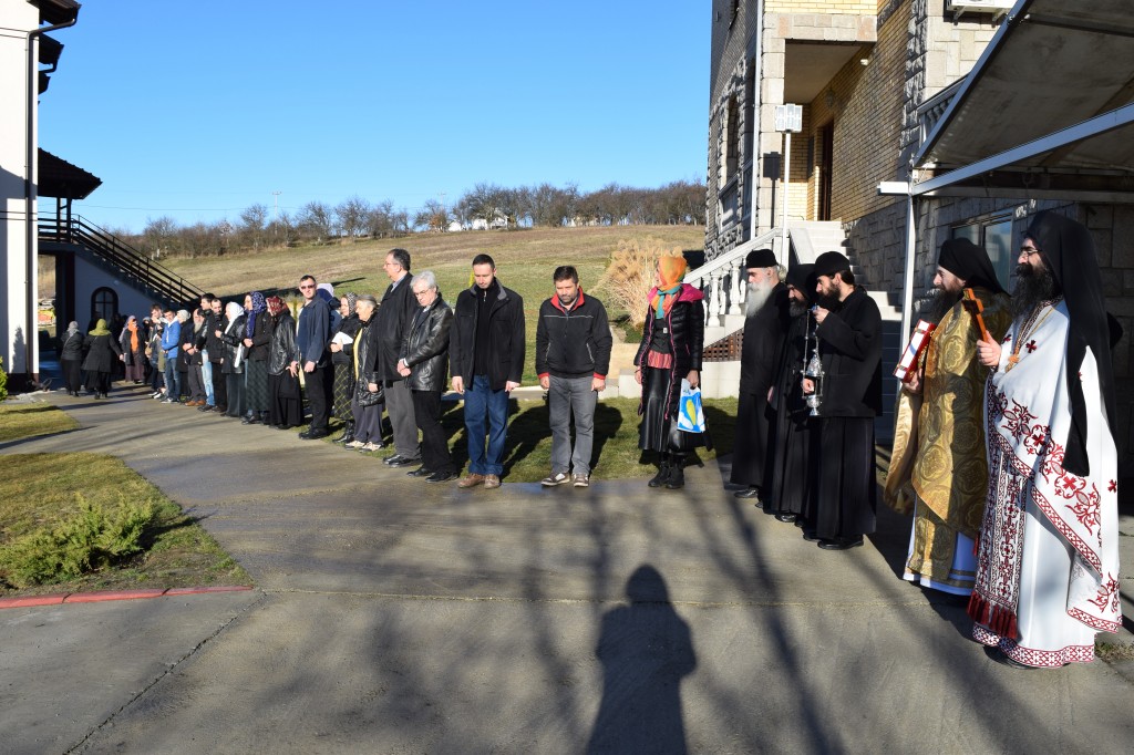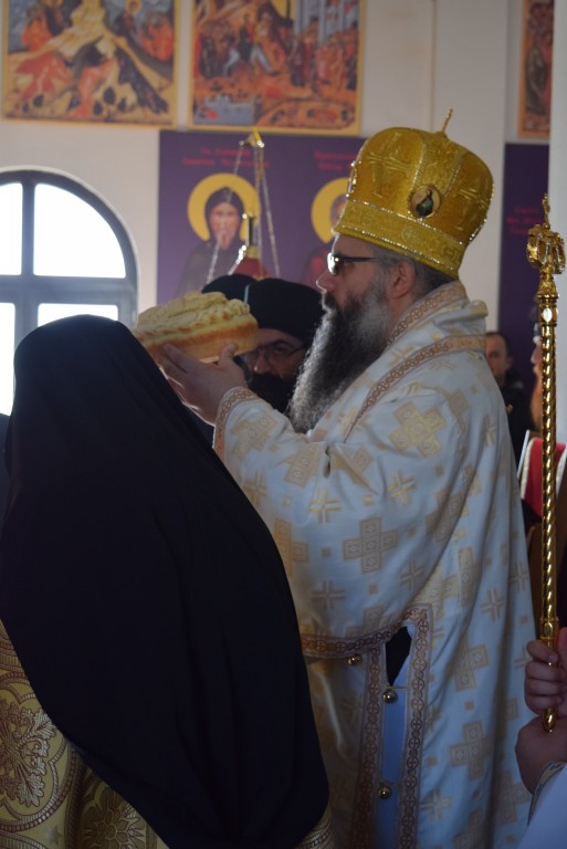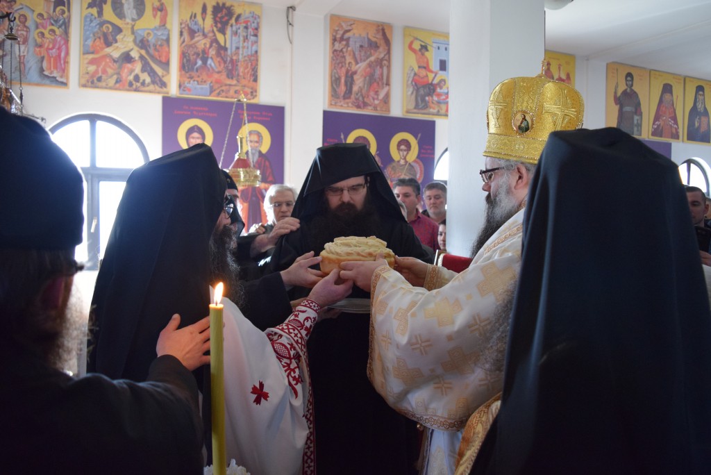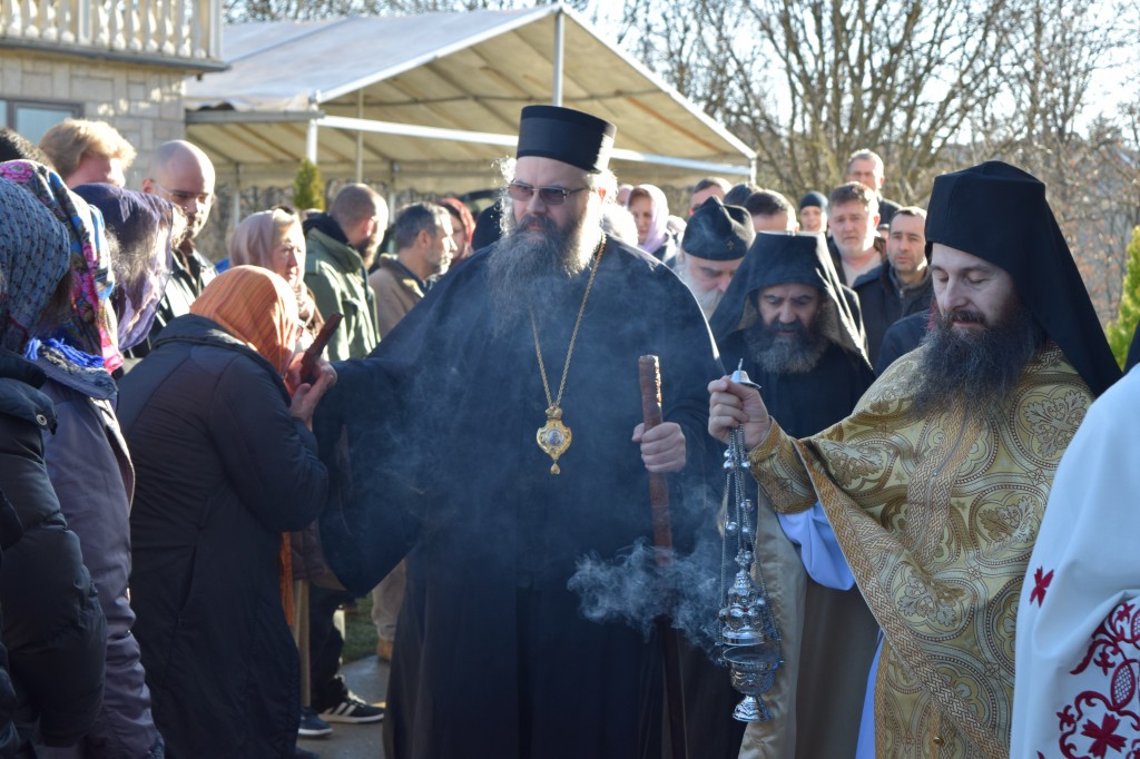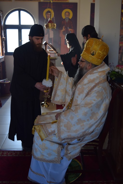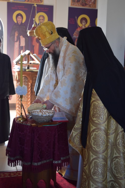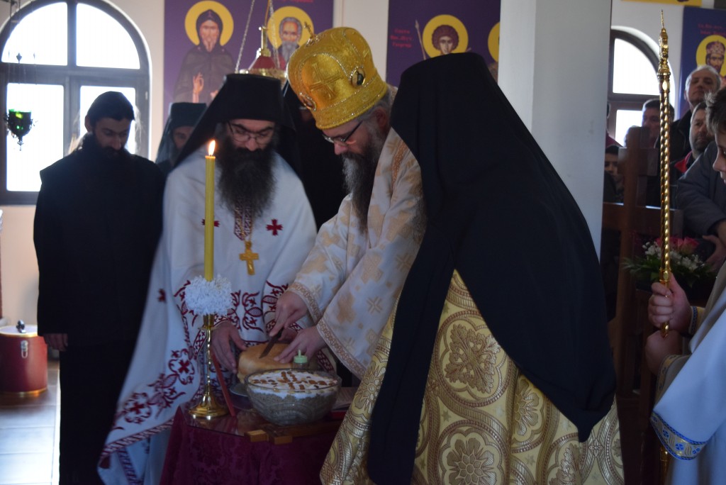 После Свете Литургије Владика Максим је обавио  чин резања славског колача и благосиљања кољива које је у част Светог Мученика Трифуна принео сабрат манастира Светог Јустина Ћелијског јерођакон Јоасаф, прослављајући на тај начин своју Крсну славу.