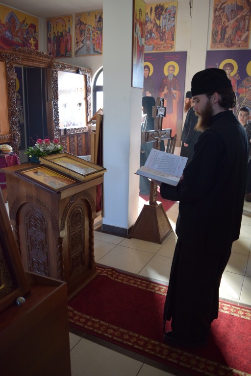 У Недељу 37. по Духовдану, 1/14.фебруара, Његово Преосвештенство Хорепископ новобрдски и панонски Г. Максим служио је Свету Архијерејску Литургију у манастиру Светог Јустина Ћелијског у Барајеву, уз саслужење настојатеља обитељи – архимандрита Наума (Мирковића), сабрата манастира –  протосинђела Игњатија (Станића) и сабрата манастира Свете Тројице у Кули – јерођакона Пајсија (Марковића).