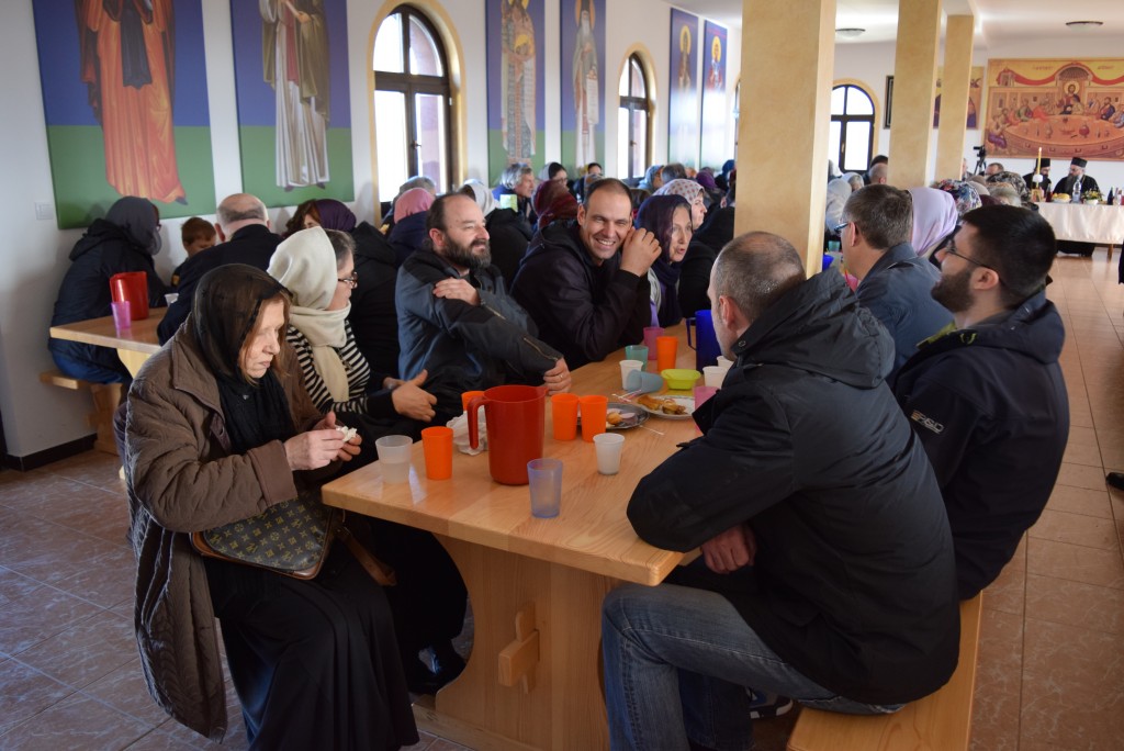 Уследила је трпеза љубави за све присутне коју су заједнички припремили братство манастира и бројни верници при катакомби.
