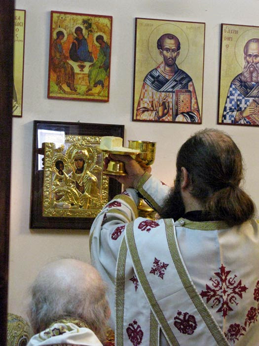 Након Свете Литургије, трпезу љубави спремили су јеромонах Јован настојатељ Катакомбе, са својом у Христу братијом.