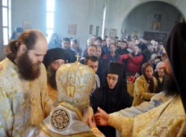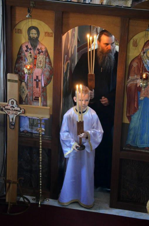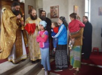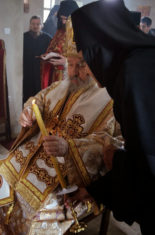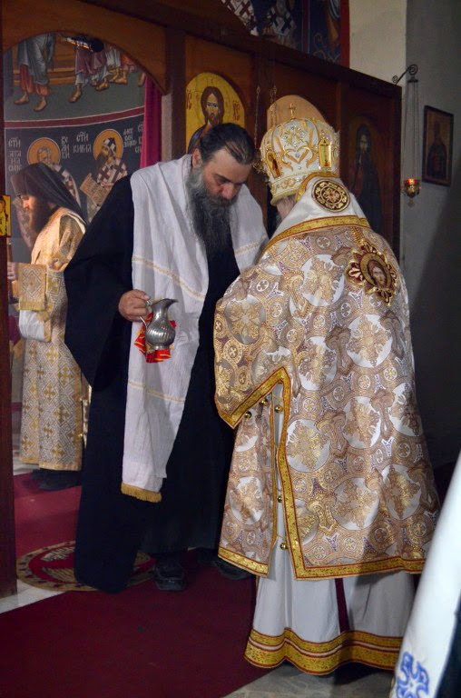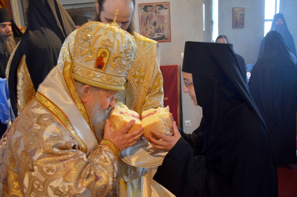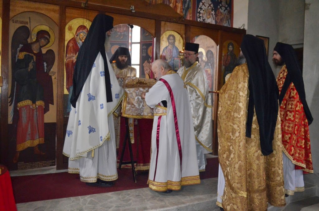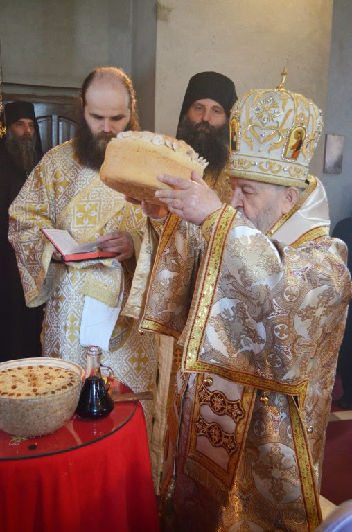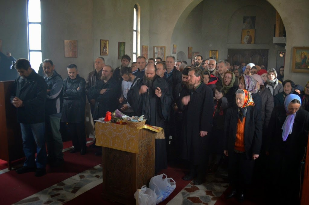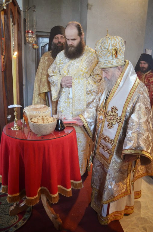 Владика је извршио чин сечења славског колача и благосиљања кољива, које је припремила монахиња Пелагија у част Преподобне Марије Египћанке, којој је посвећен скит у којем монахиња Пелагија живи, а којој је и ова недеља посвећена.