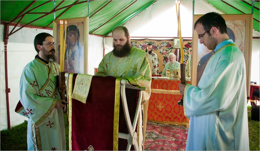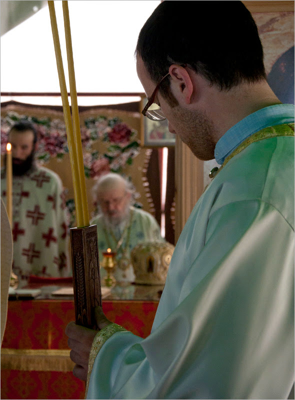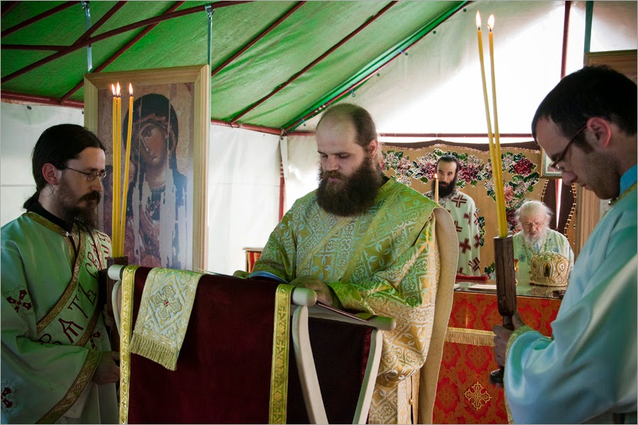 Епископу Артемију су саслуживали свештеномонаси и свештенођакони Епархије.