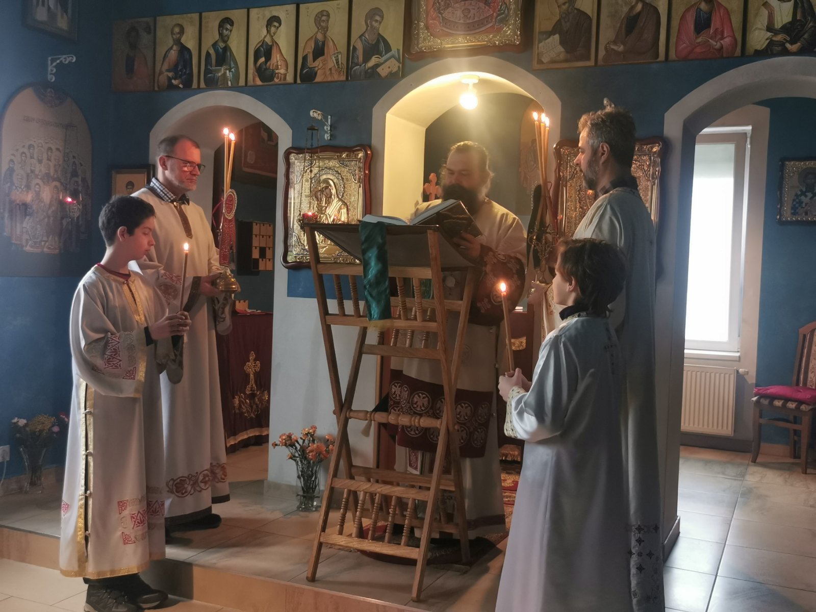 Унедељу о блудном сину, 16. фебруара, Његово Преосвештенство Епископ рашко-призренски у егзилу Г. Г. Ксенофонт служио је Свету Архијерејску Литургију у манастиру Светих српских светитеља у Гринбагу (Аустрија) уз саслужење настојатеља манадтира протосинђела Димитрија (Ђоковића). Литургији је присуствовало око 80 верника из Беча и околине. Неки од њих су се сјединили са Господом кроз Свето причешће.