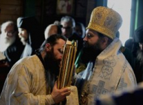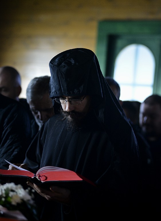 Монаси су углавном били носиоци исповедања вере Православне и очувања вере Православне. Тако је било у време Светог Теодосија, тако је, како видимо, и данас. Наравно, да би монаштво постојало мора да има континуитет свог постојања овде на земљи. Ми видимо да Господ то у нашој епархији обилато дарује. И синоћ је овде обављен узвишен свети чин монашког пострига. Монаси сами својим постојањем сведоче да је жива та реч Божија, реч јеванђелска тиме што свој живот њој посвећују. И најубедљивија, најуверљивија проповед јесте управо сам тај монашки живот и монашки подвиг, то је најуверљивија проповед Светог Јеванђеља. И синоћ је некадашњи брат Давид, а сада монах Артемије управо то потврдио. Велико је укрепљење када Господ умножава број монаха, велико је укрепљење за нас монахе и за свеукупно – Цркву. Монаси су, можемо слободно рећи, на тој првој линији фронта у духовној борби и то је одсудна борба за спасење наших душа у ово време и за очувања праве вере, за очување Цркве Божије.“