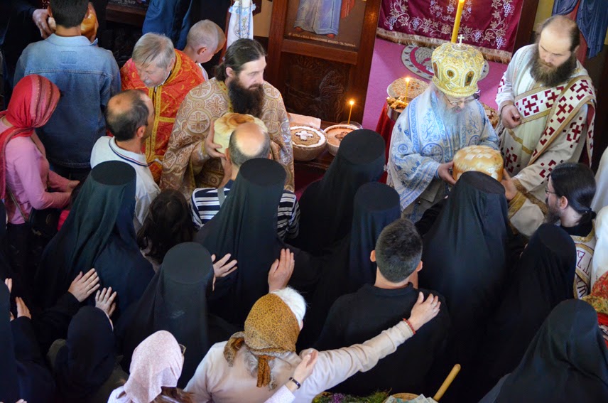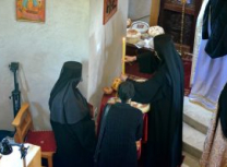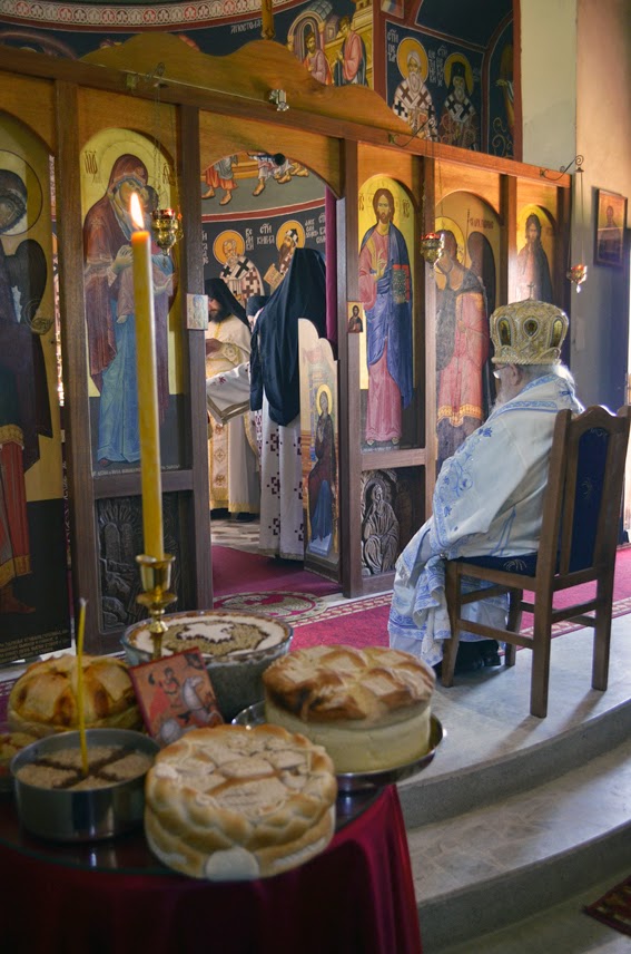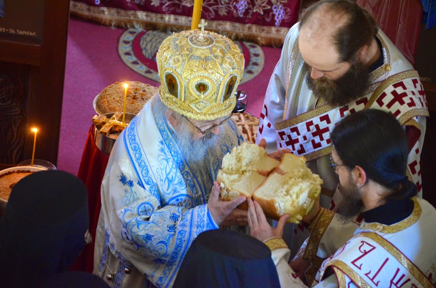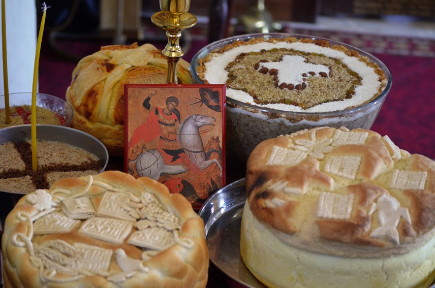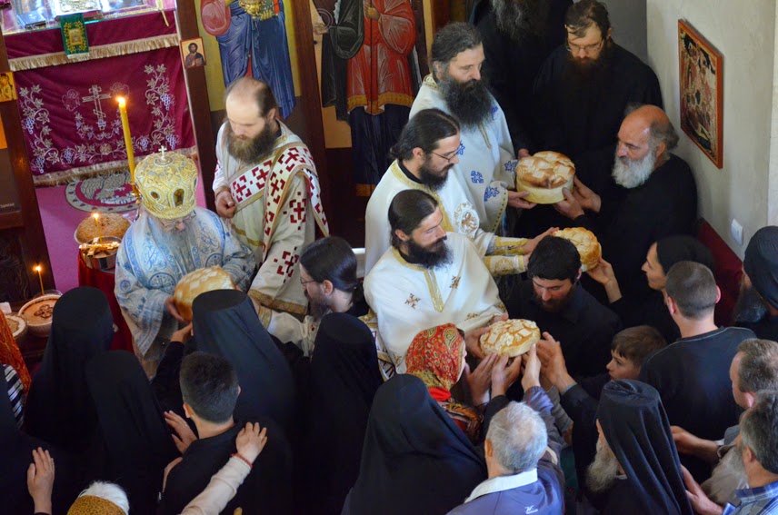 Након Свете Литургије пререзани су славски колачи у част Светог Великомученика Георгија, које су припремили јерођакон Паладије, монахиња Пелагија и многи други монаси и верници свечари. Пастирска беседа Епископа Артемија укрепила је све присутне вернике.