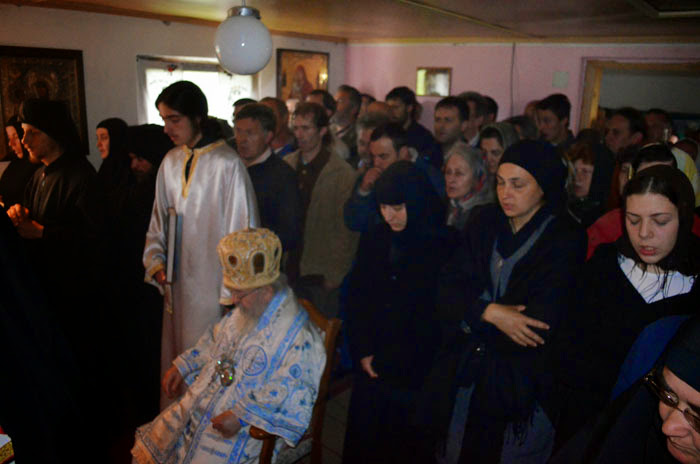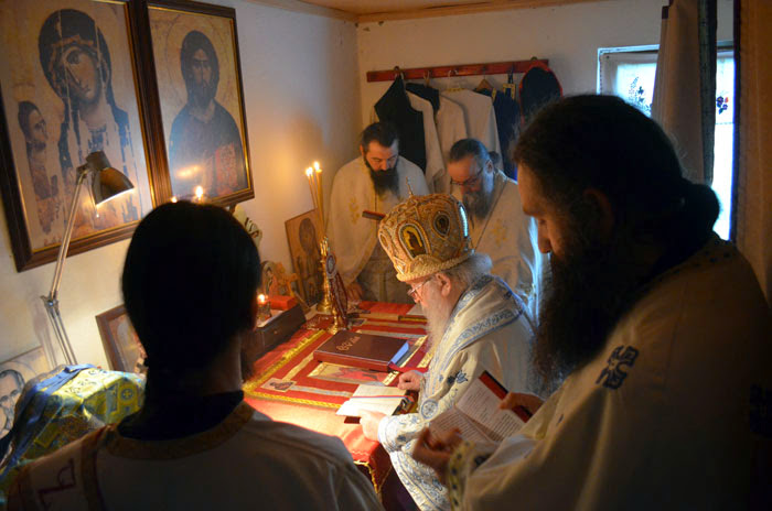 Свету Литургију Преосвећени Владика је служио уз саслужење архимандрита Николаја, протосинђела Иринеја и Варнаве, и јерођакона Дамјана и Паладија. Настојатељ ове Катакомбе протосинђел Дамаскин након Божанствене Литургије спремио је Трпезу љубави за све присутне. Владика се обратио верницима са надахнутом беседом о Самарјанки Фотини.