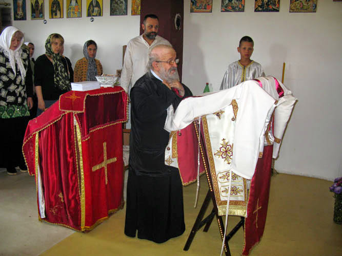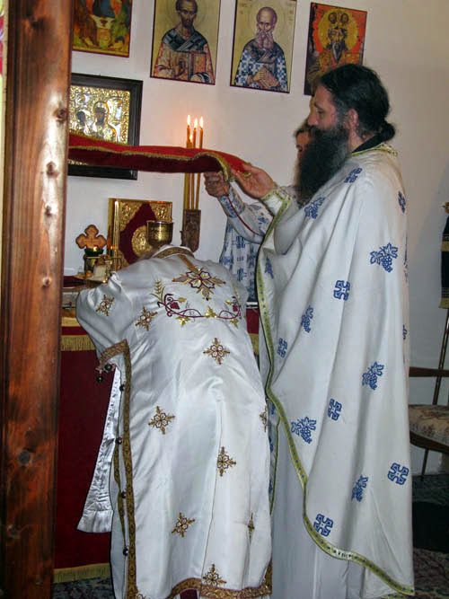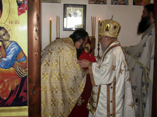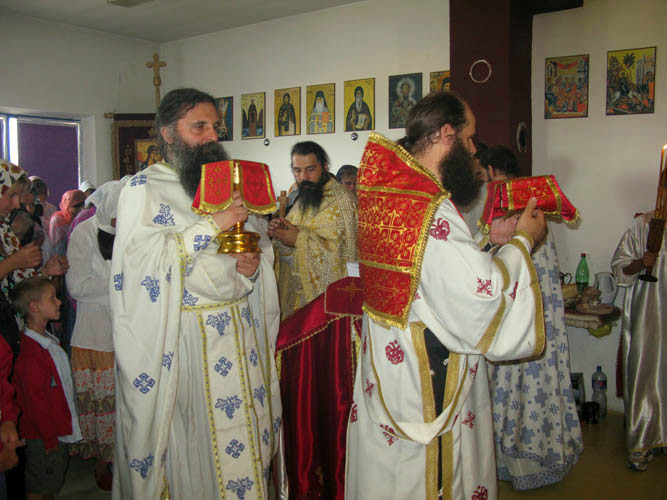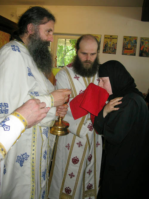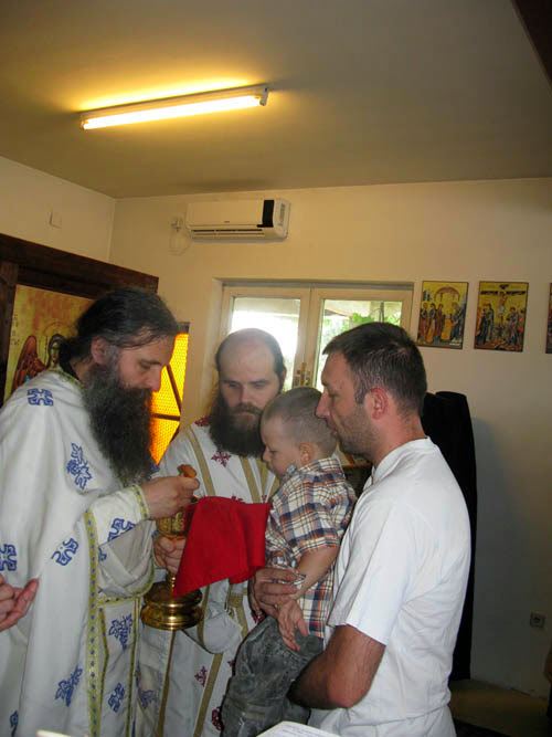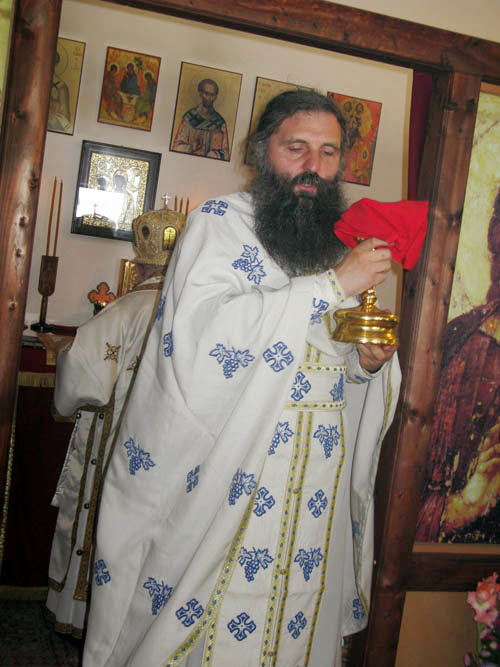 После Свете Архијерејске Литургије, настојатељ Катакомбе јеромонах Јован спремио је трпезу љубави са својом у Христу братијом, јеромонахом Софронијем, и монахом Михаилом.