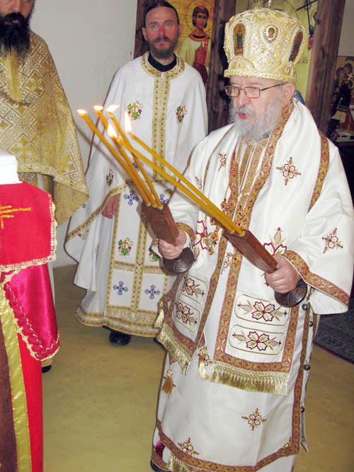 Епископу Артемију су саслуживали свештеномонаси и свештенођакони Епархије.