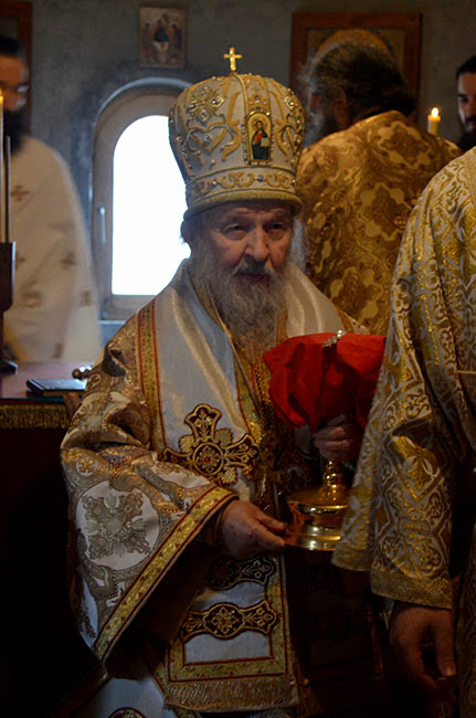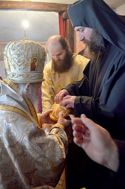 Такође је прослављен и Свети Симеон мироточиви данас, те је Владика Артемије извршио чин сечења славског колача и благосиљања кољива.