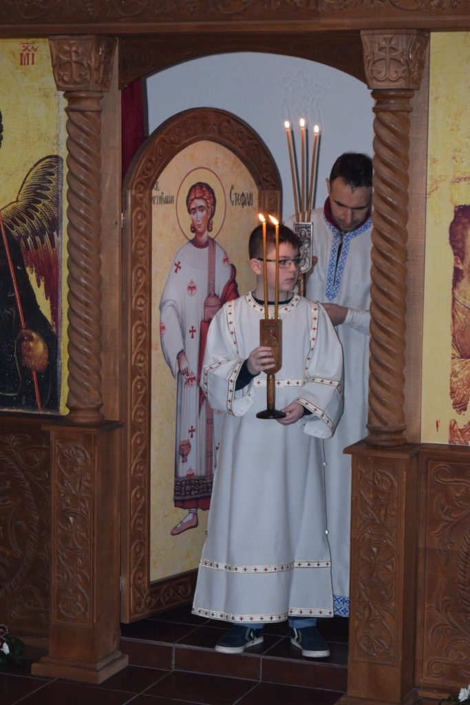 Четврта недеља Светог Великог Поста назива се „Средопосна“. Посвећена је великом светилнику Цркве Божије, просијалом у посту и молитви, светом Јовану Лествичнику. У Средопосну недељу, 5/18. марта, Његово Преосвештенство Епископ рашко-призренски у егзилу Г.Г. Артемије служио је Свету Архијерејску Литургију у манастиру Светог Архангела Михаила у Нишу уз саслужење: Архимандрита Варнаве (Димитријевића), јеромонаха Хризостома (Јовановића), јереја Добрице (Чакаревића), јереја Далибора (Јовића) и јерођакона Паладија (Матића). Светој Архијерејској Литургији присуствовало је око стотину светосаваца. Неки од њих су се сјединили са Господом кроз Свето Причешће.У својој архипастирској беседи Владика је најпре говорио о Светом Јовану Лествичнику и о светој Тајни покајања, а потом протумачио Јеванђелску причу о маловерном оцу: