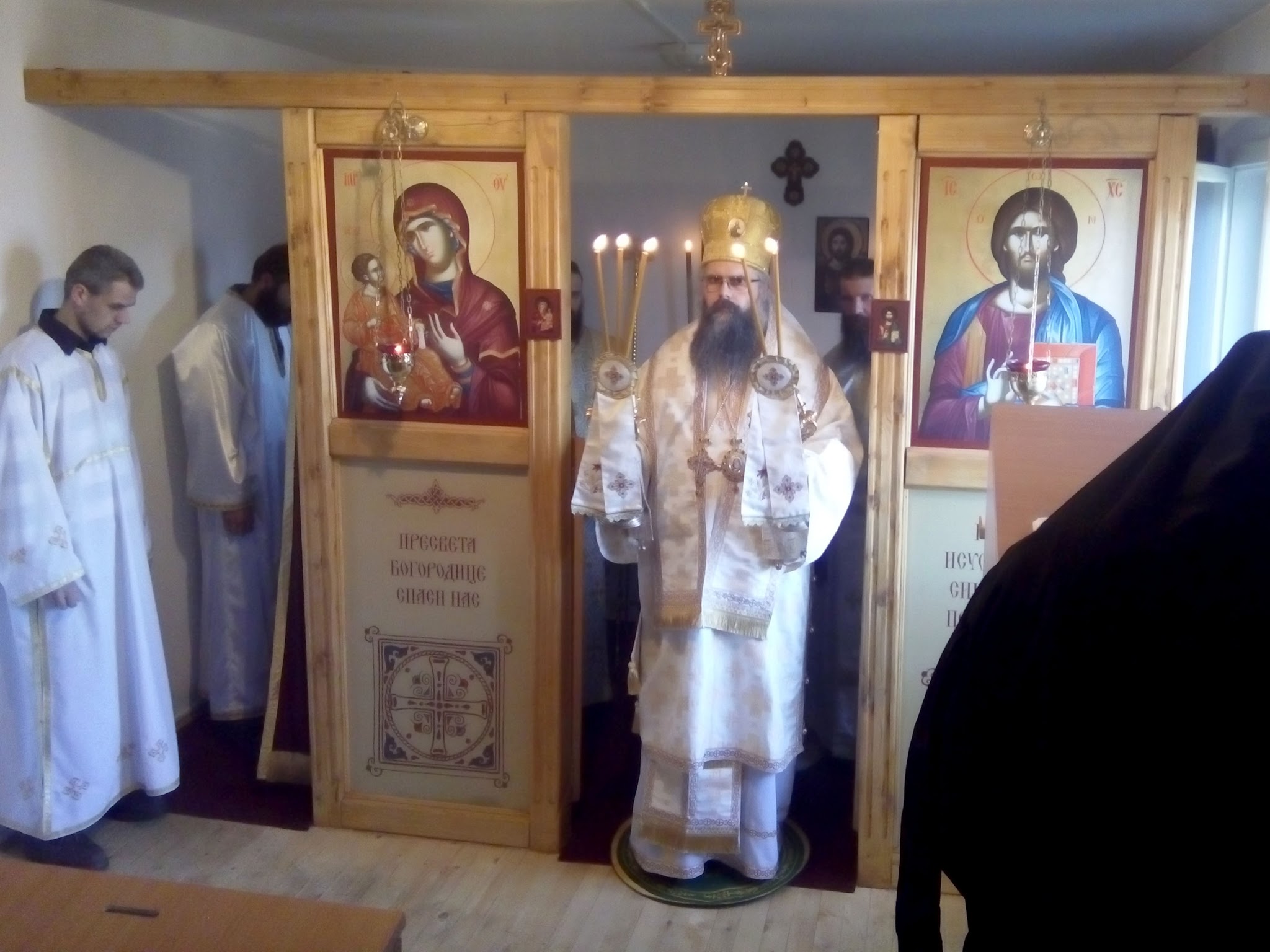 У својој архипастирској беседи владика Максим је говорио о светим Праоцима којима је ова недеља претпразништва Рођења Христовог посвећена. Истакао је да су сви старозаветни патријарси, пророци и праведници Богу угодили својом непоколебивом вером, а „основ те вере било је обећање Божје о слању Месије, Спаситеља рода људског. То обећање је главна садржина Старог завета, којим је Господ припремао изабрани народ и цео свет за долазак Месије. “Нови завет говори о испуњењу тог обећања, те је основа вере нас хришћана, не обећање, већ испуњење доласка обећаног Месије, тј. Господа и Бога и Спаса нашег Исуса Христа. Не само вером, свети Праоци су угодили Богу и трпљењем свих оних невоља којима су изложени сви људи који се труде да остану доследни истинитој вери у Истинитог Бога. Зато нас свети Праоци својим примером уче најпре вери и трпљењу, са одстојавањем на позицији истините вере у Бога неопходно и повезано. Владика је изразио задовољство што га је Бог удостојио да се ове недеље заједно са присутним верним народом помоли Богу, принесе бескрвну Жртву, одслужи Свету Литургију у новооснованој катакомби Светог Георгија. Посебно је упутио честитке мајкама, којима је ова недеља, коју називамо Материце, посвећена, подсетивши их да је „материнство крст којим оне треба да угађају Богу и спасавају своје душе.“