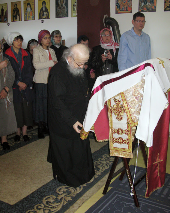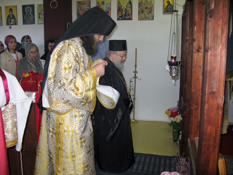 Епископу су саслуживали свештеномонаси и свештенођакони из Епархије у Егзилу, као и свештеник Лазар Секулић из Тимочке Епархије, који је нови клирик Епархије у Егзилу.