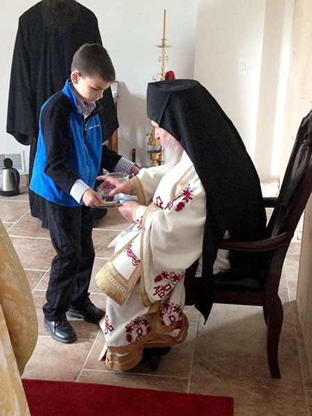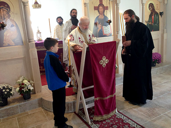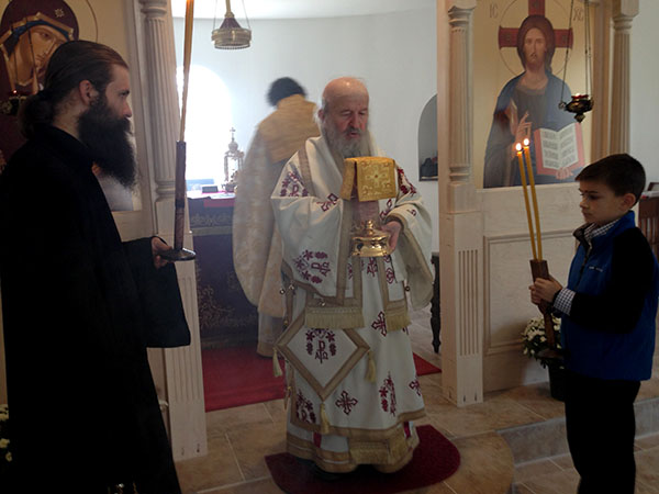 На Литургији је Владика Артемије у чин протојереја произвео јереја Стефана.