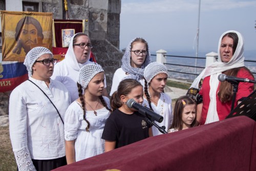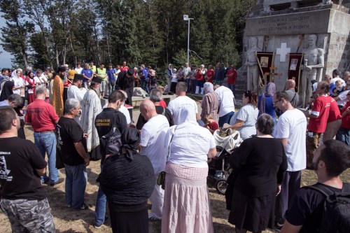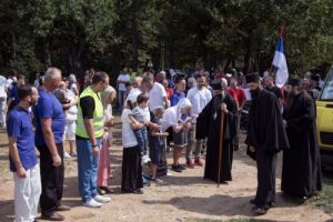 По доласку код спомен костурнице око 13 часова, учесници литије су узели благослов од О.Симеона (настојатеља Катакомбног манастира Св.краља Милутина у Бадовинцима) који им је том приликом давао иконицу “Сабор србских Светитеља“ и целивали су Часни Крст. Након краћег одмора и послужења, дочекан је Епископ хвостански и барајевски Наум, који је потом служио парастос.