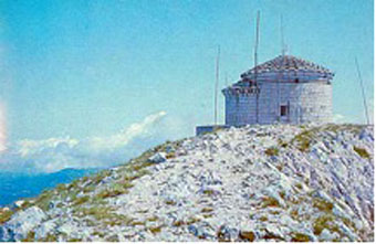 и над згомиланом Његошевом капелом на Ивановим Коритима, у подножју Ловћена (десно, септембар 2001. године)
