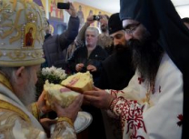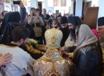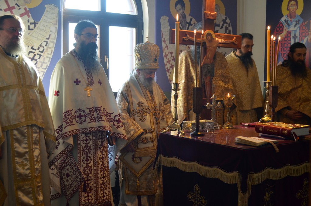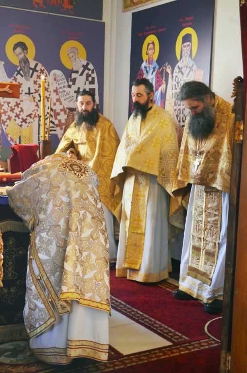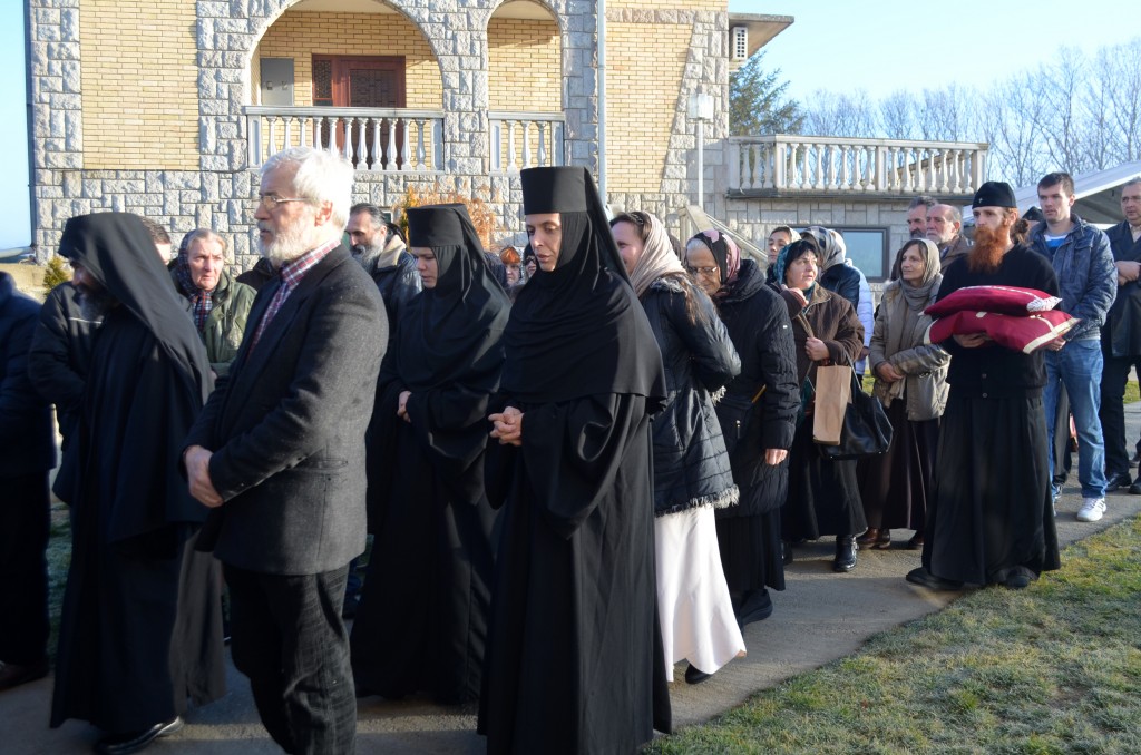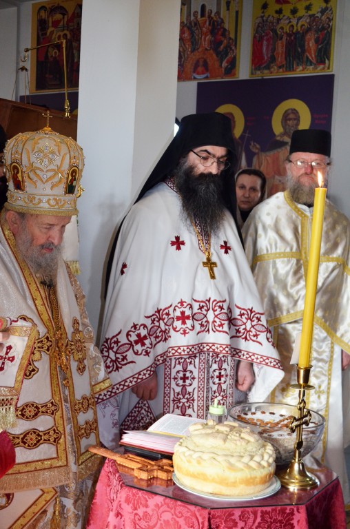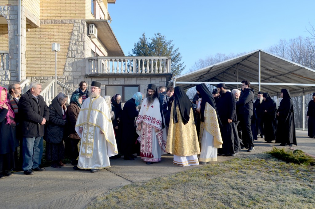 После свете Литургије, одлсужен је молебан пред почетак Нове године, а затим је Владика пререзао славски колач, који су у част светог Василија Великог принели настојатељ манастира архимандрит Наум (који светог Василија прославља као Крсну славу) и сабрат манастира монах Василије (који светог Василија прославља као свог небеског заштитника, чије монашко име носи).