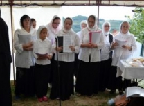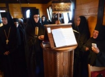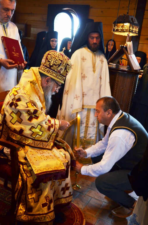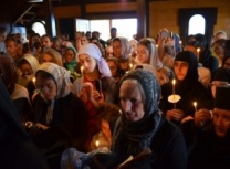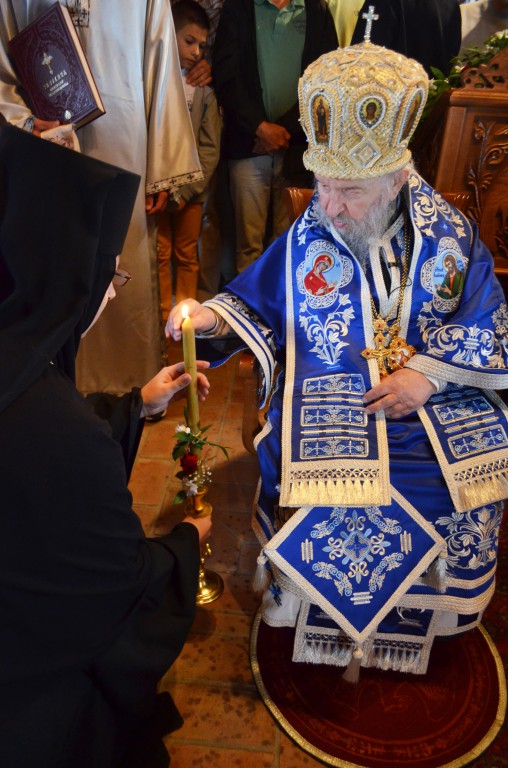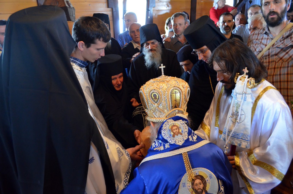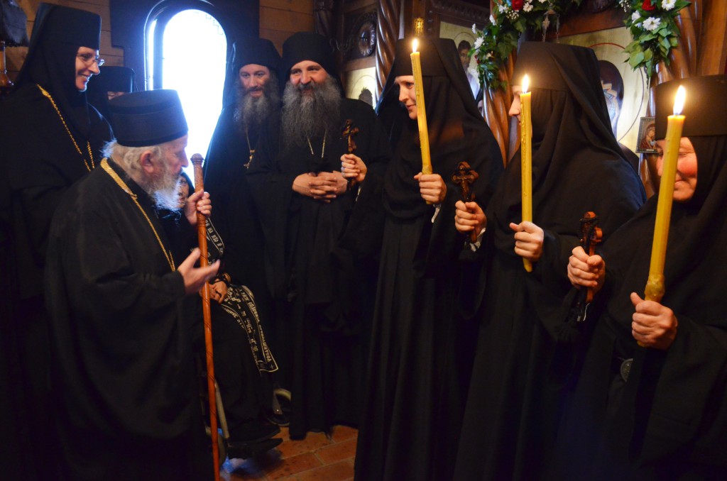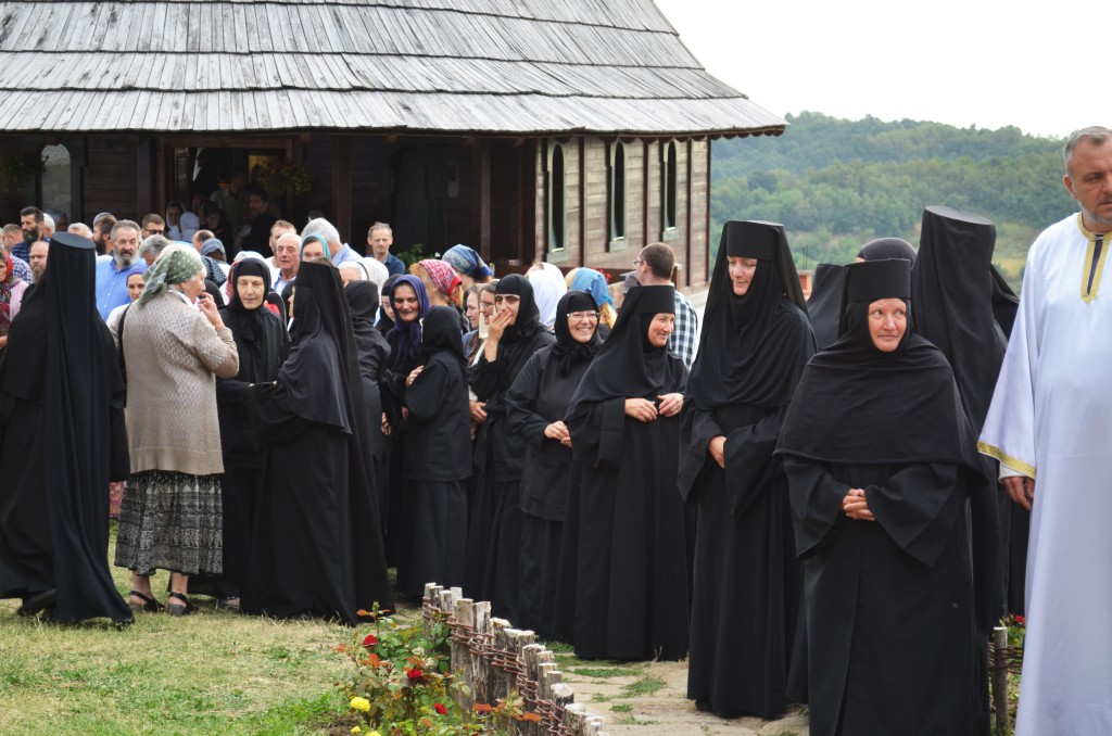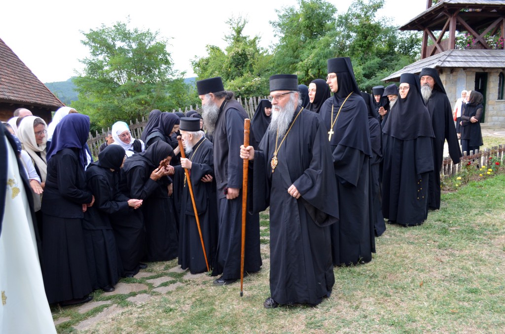 У данашњем времену, у данашњем свету, времену и свету искушења, саблазни, грехова и свакоразних злочина других, постоје и даље душе које се на глас Божији одазивају. То су и ове наше сестре које су се вечерас удостојиле да после три и више година припремања у искушеништву буду удостојене да приме свети ангелски монашки лик. То је велика милост и дар Божији и Пресвете Богородице, али и велика обавеза. Чујем какве су завете дале ове наше сестре, чули сте на шта су себе обавезале и чули сте сви шта је на крају молитве речено – да ће Господ када дође да суди узвратити, не по ономе шта смо обећали, него по ономе шта смо од обећаног извршили одржали, ово што су сестре обећале није нимало лако, није лако за човека, није лако за човекову природу, није лако само за човека. Тога су свесне и ове наше сестре и зато су на свако питање одговарале са смирењем. Не онако као што би у свету говарали да, хоћу, могу и тако даље, него: “Да али са Божјом помоћи“, јер без Божије помоћи, знају, да ништа не можемо добра учинити. Зато се ми вечерас молимо Богу да Господ њих укрепи на овоме путу којим су кренуле, путу ка Царству небескоме, ка Животу вечноме.“