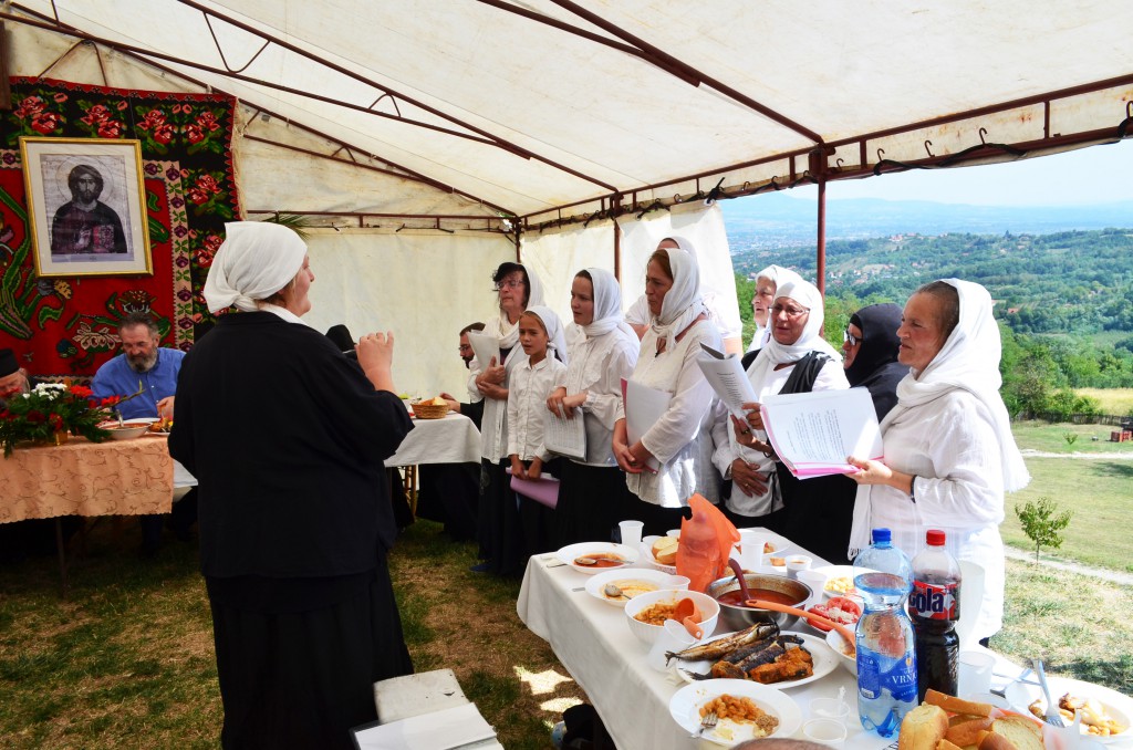 Уследила је трпеза љубави за све присутне. Том приликом је пригодни програм извео хор „Преподобни Јустин Ћелијски“ из Барајева.