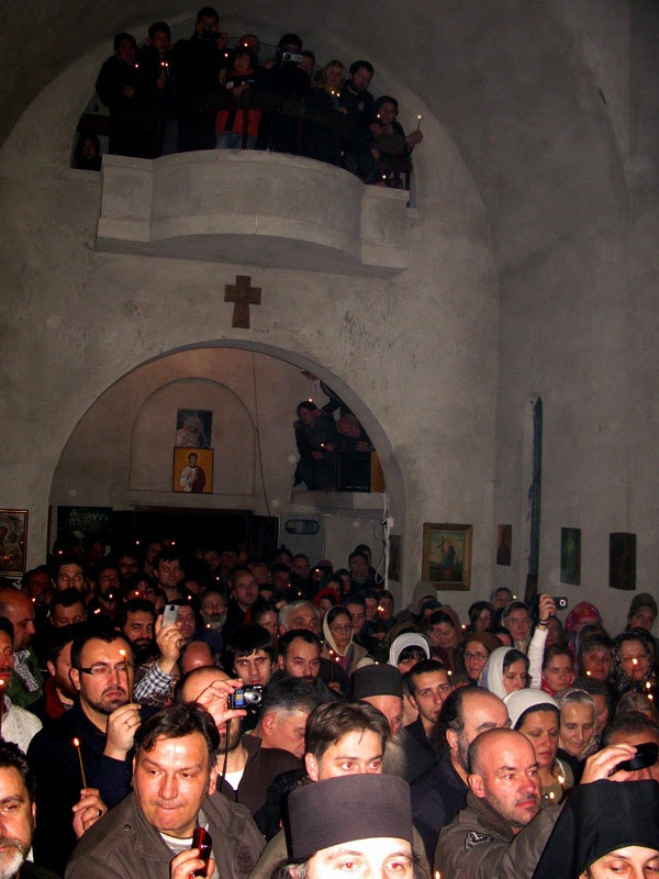 На сам празник Владика Артемије је служио Свету Архијерејску Литургију у препуном храму Светог Јована Крститеља уз саслужење десетак свештенослужитеља. Међу њима се по први пут нашао свештенослужитељ који не припада прогоњеном монаштву. Ради се о Јереју Небојши (Стевићу), доскорашњем клирику Епархије банатске и, нешто раније, Епархије шумадијске, који и сам носи ране прогона од стране лажних пастира – нарушитеља Светог Предања. На Светој Литургији са Христом су се, кроз Свето Причешће, сјединили новопострижени монаси и бројни верници који су се за овај свети сусрет са Господом спремали постом, молитвом и исповешћу.