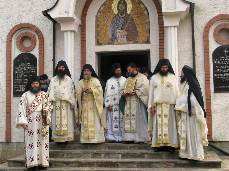 Нагласимо у овом прилогу и то да је Јереј Небојша (Стевић), од овог празничног дана и званично прешао у клир Епархије рашко-призренске у егзилу. Главни разлог његовог преласка је јавно декларисање Патријарха Иринеја као екуменисте. Овај ревнитељ Истине и чувар Светосавског Предања и новопострижени монаси представљају благодатне дарове Тројице Великих Јерараха Цркви у прогону.