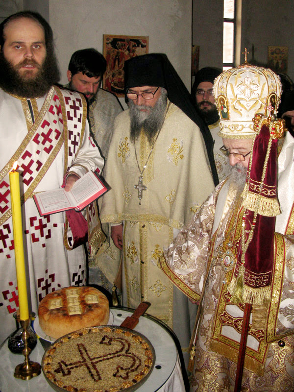 После Свете Литургије Владика је пререзао колач принесен у славу Света Велика Три Јерарха а за живот, здравље и напредак у духовном животу новопострижених монаха Василија, Григорија и Хризостома који су по овим Светим великим јерарсима и добили своја монашка имена. На крају се Владика обратио сабрању верних својом архипастирском беседом (беседа се налази у прилогу).