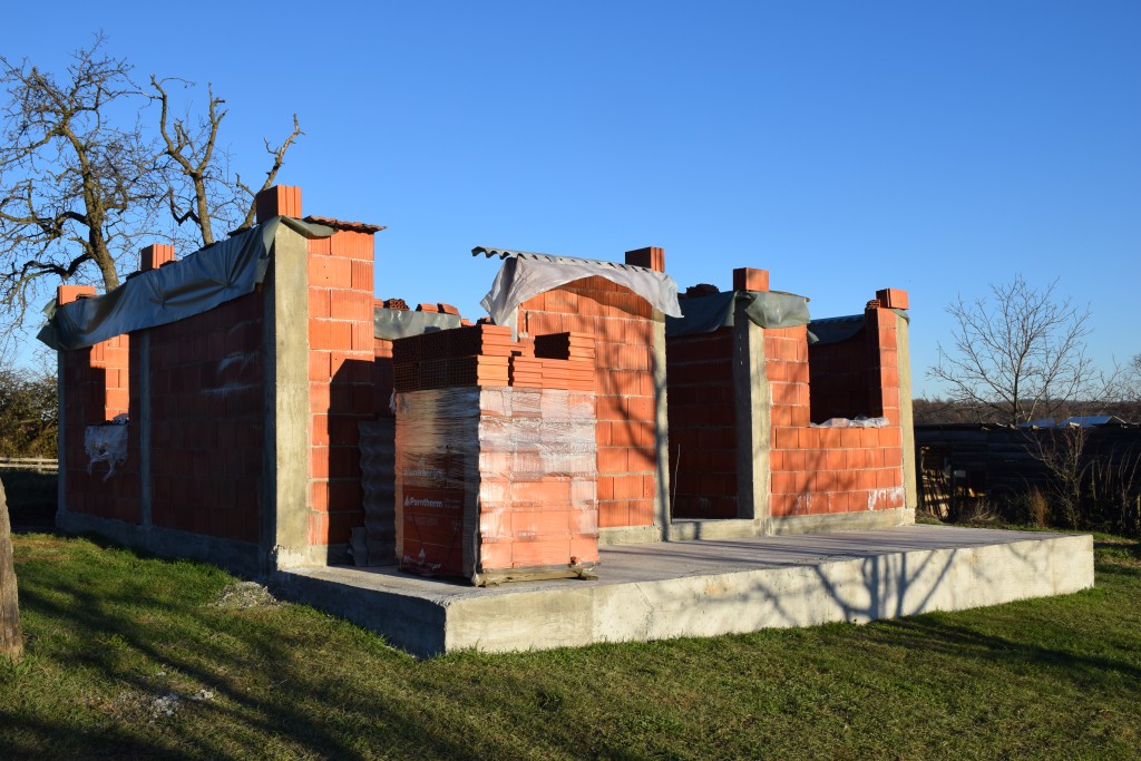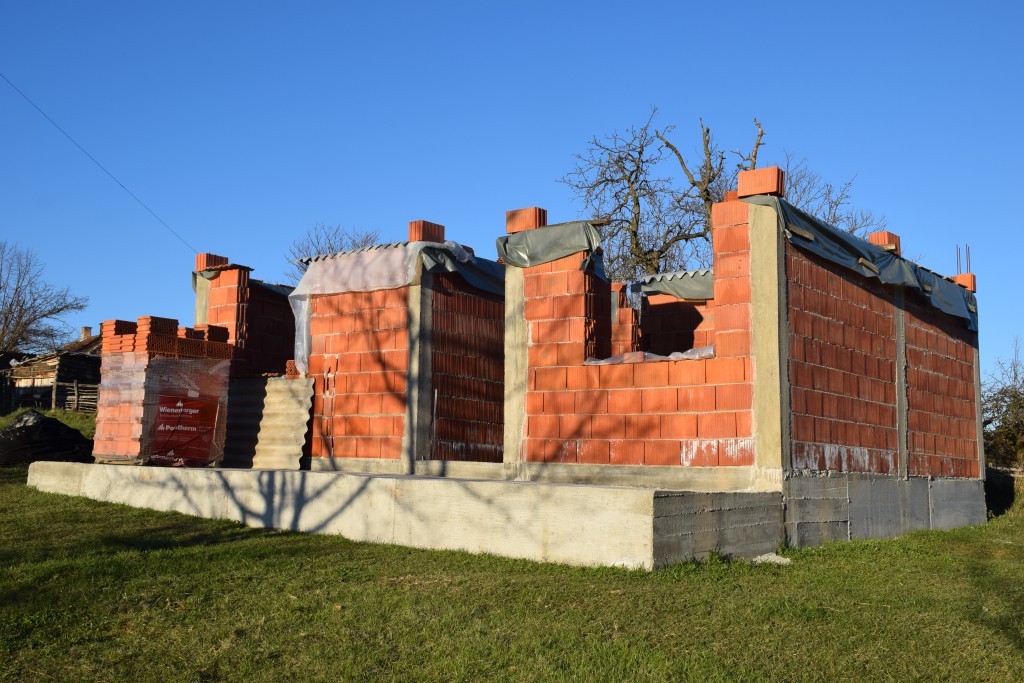 Започели смо изградњу нове куће у којој би ова породица могла да живи. У новој кући која у основи има 56 м2 озидане су две спаваће собе, купатило и кухиња са дневним боравком. Испред је тераса од 17м2. Потребно је да се излије плоча и да се кућа укрови како би касније могло да се настави са увођењем струје, воде и осталих унутрашњих радова.