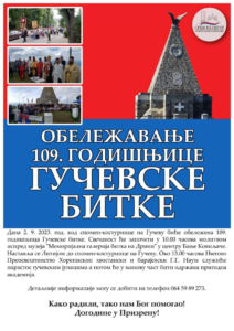 Дана 2. 9. 2023. године, са благословом Његовог Преосвештенства Епископа рашко-призренског у егзилу Г.Г. Ксенофонта, одржаће се десето традиционално обележавање успомене на Гучевску битку.
