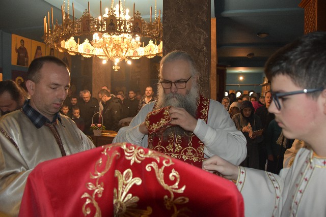 Дивни светитељ кога данас прослављамо, кога наш драги владика Наум слави као своје крсно име, као своју крсну славу, па му и пресекосмо колач и овом приликом честитамо му да на многе године прославља светога заштитника свога заштитника своје породице, свога личнога заштитника светога Василија Великога архиепископа Кесарије кападокијске. Велики светитељ и велики учитељ Цркве који је како кажу црквене пјесме, ту неизрециву премудрост тајне божанства поцрпао и источио људима као живоносну, као животворну воду. Та животворна и живоносна вода која из самога Христа излажаше из тога извора воде живе, била је на укрепљење и на освјежење нама вјернима православним хришћанима.