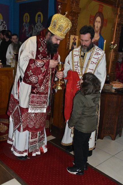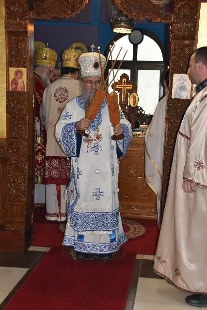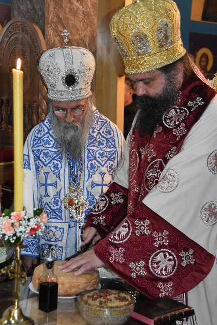 По завршетку Свете Литургије одслужен је молебан пред почетак Нове године. Након молебана Владика Николај је извршио чин резања славског колача и благосиљања жита које је у част светог Василија Великог принео Владика Наум, свечар светог Василија.