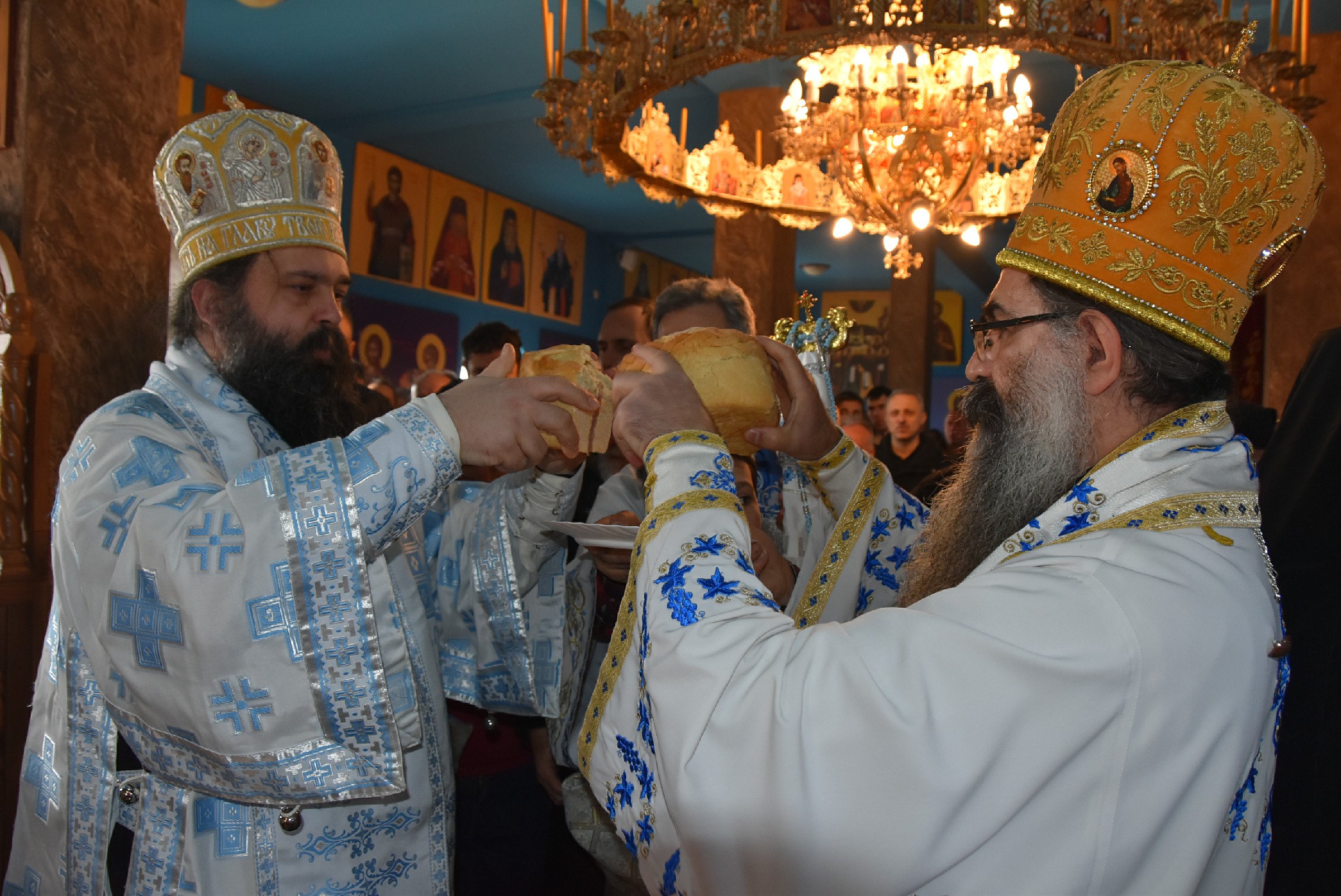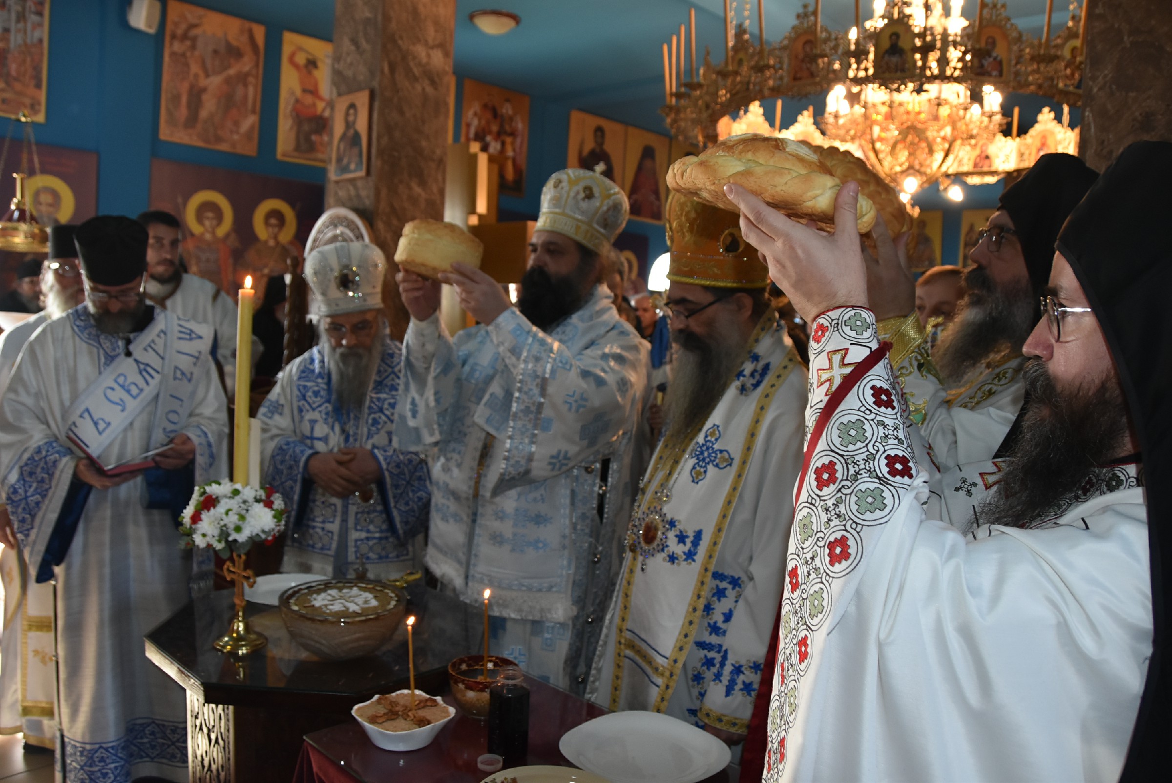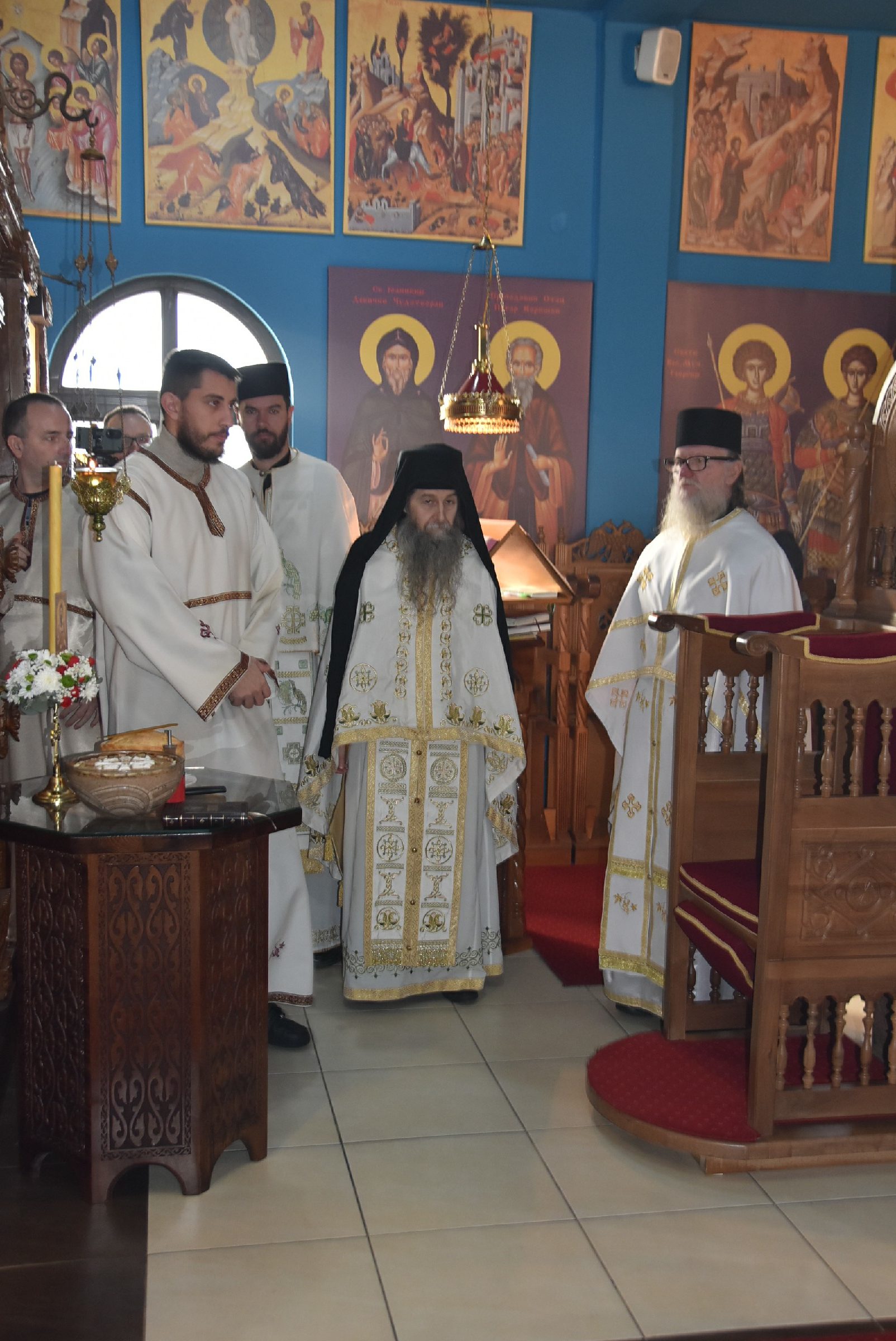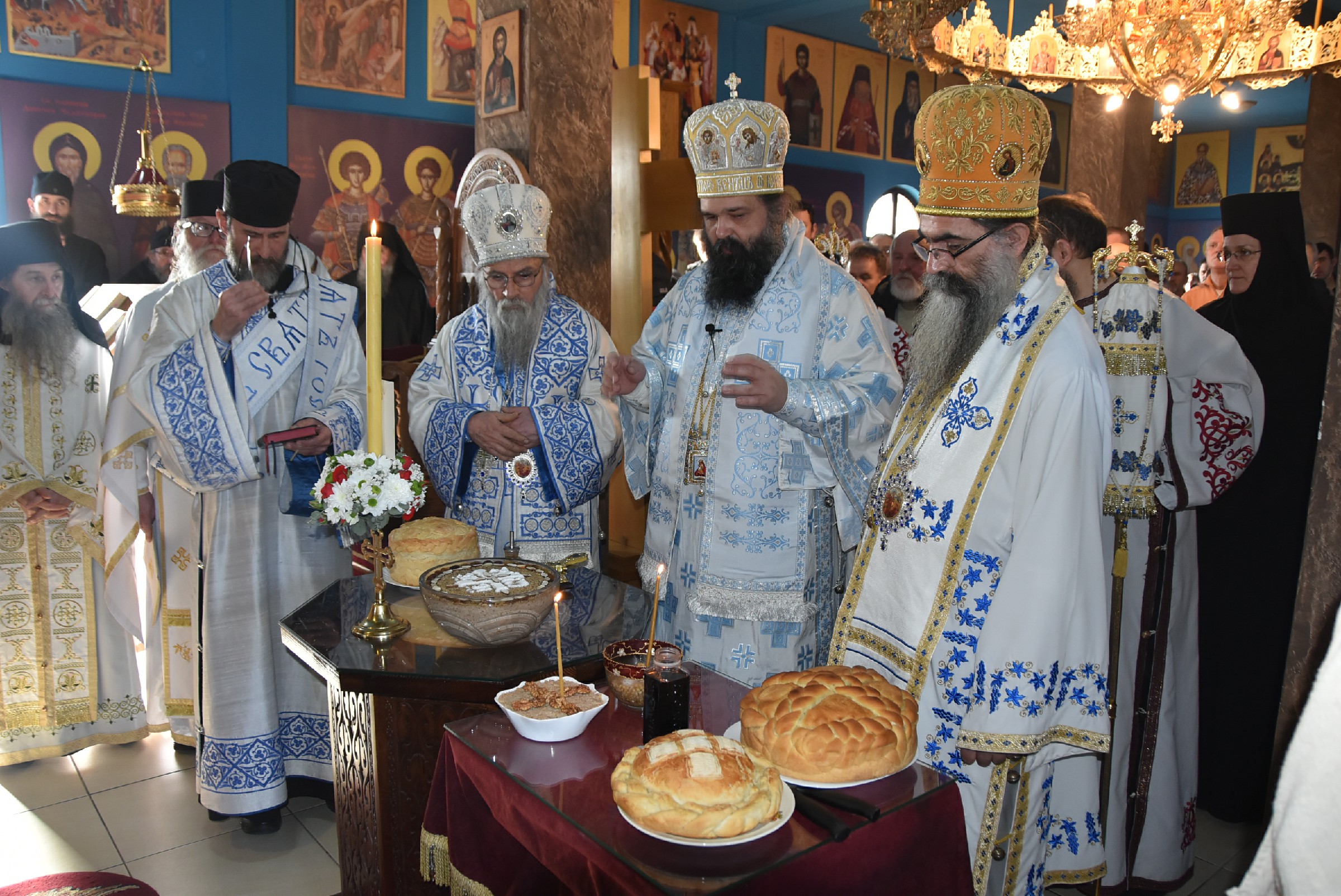 По завршетку Свете Литургије одслужен је молебан пред почетак Нове године. Након молебана Владика Ксенофонт је извршио чин резања славског колача и благосиљања жита које је у част светог Василија Великог принео Владика Наум, свечар светог Василија.