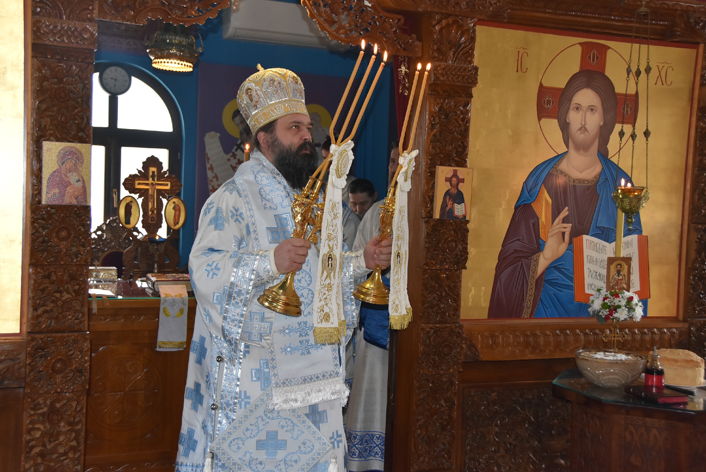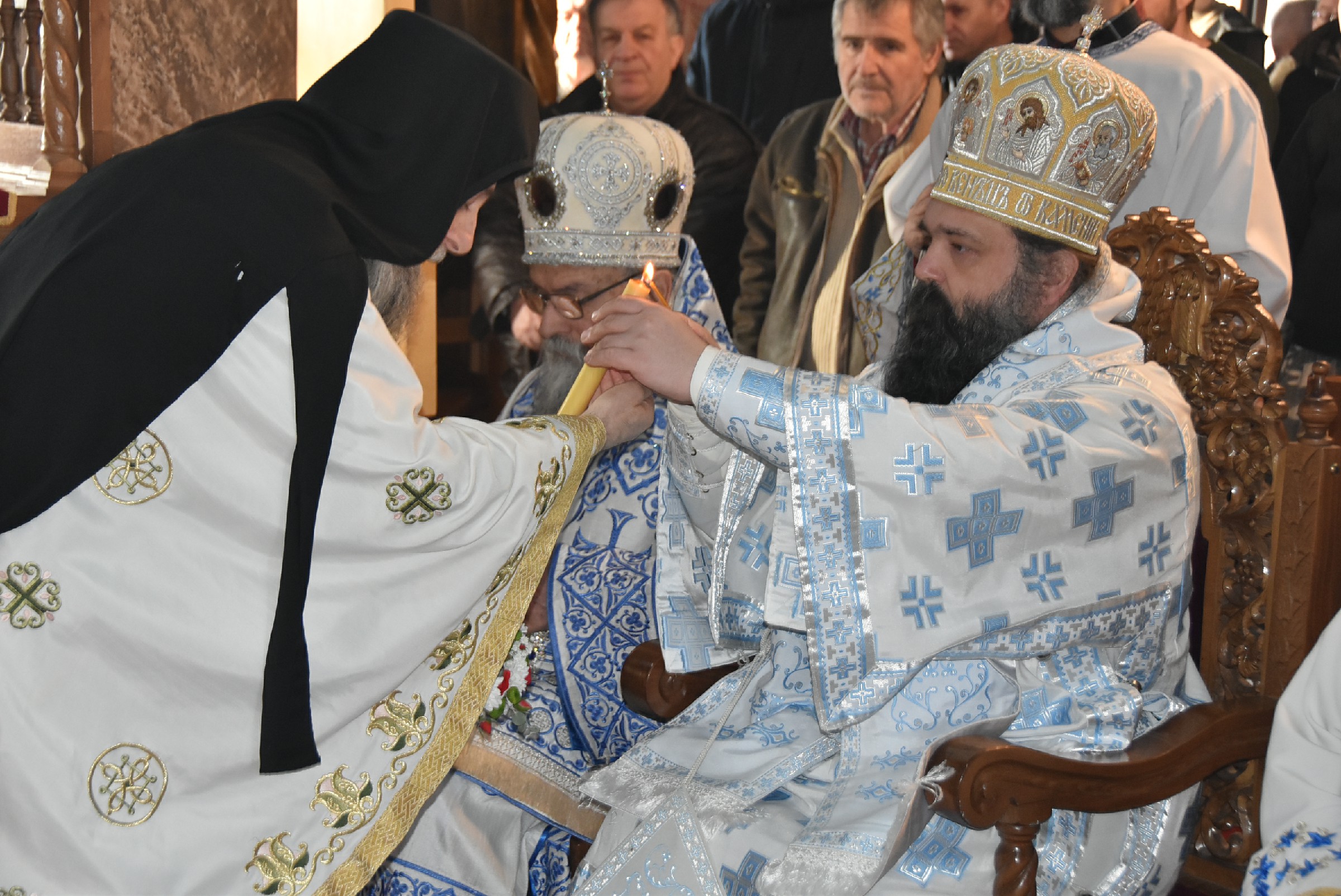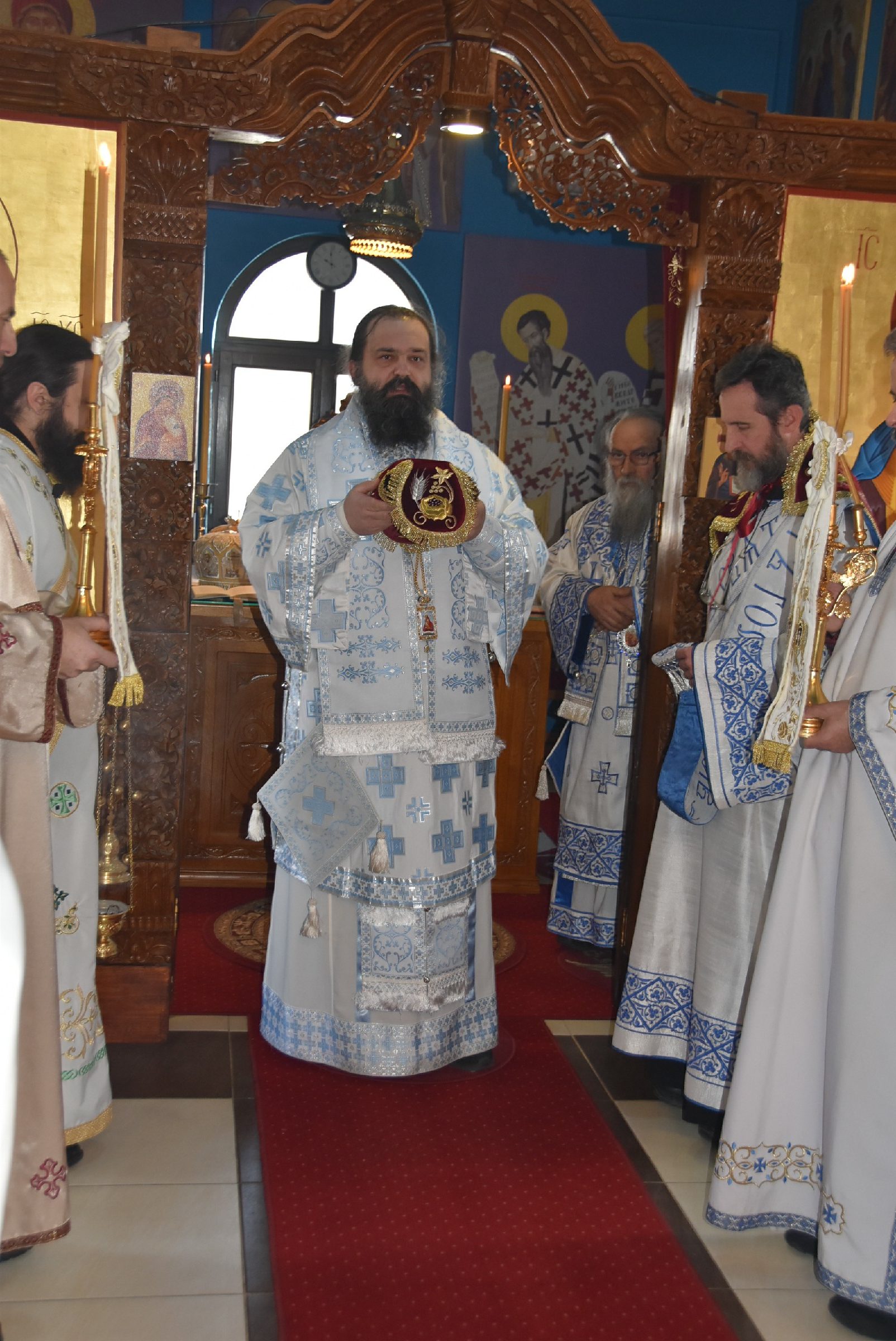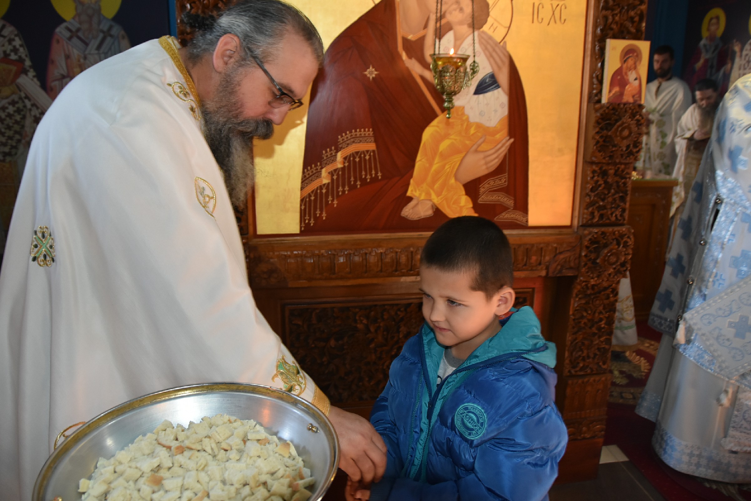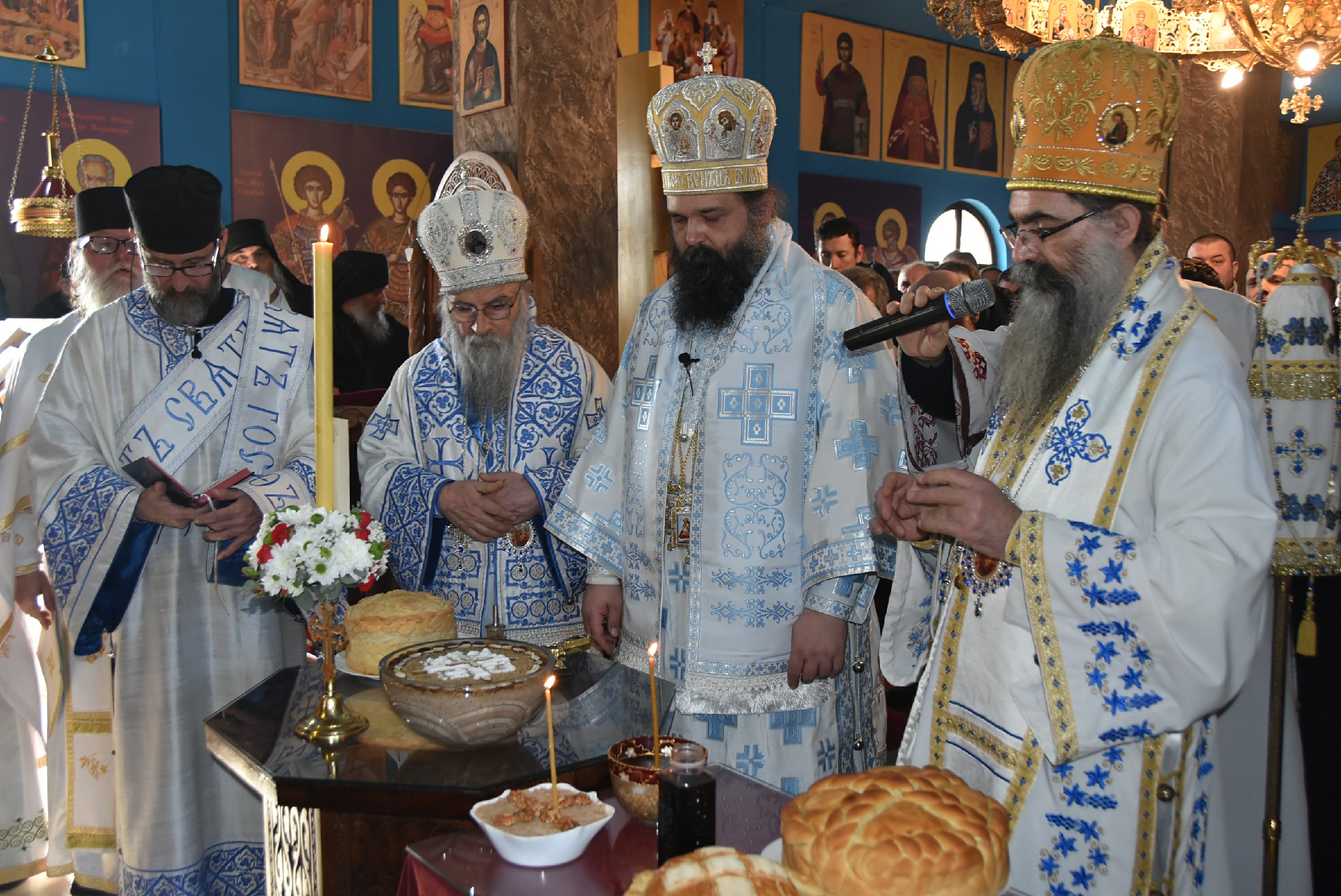 По завршетку Свете Литургије одслужен је молебан пред почетак Нове године. Након молебана Владика Ксенофонт је извршио чин резања славског колача и благосиљања жита које је у част светог Василија Великог принео Владика Наум, свечар светог Василија.