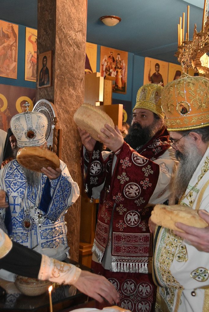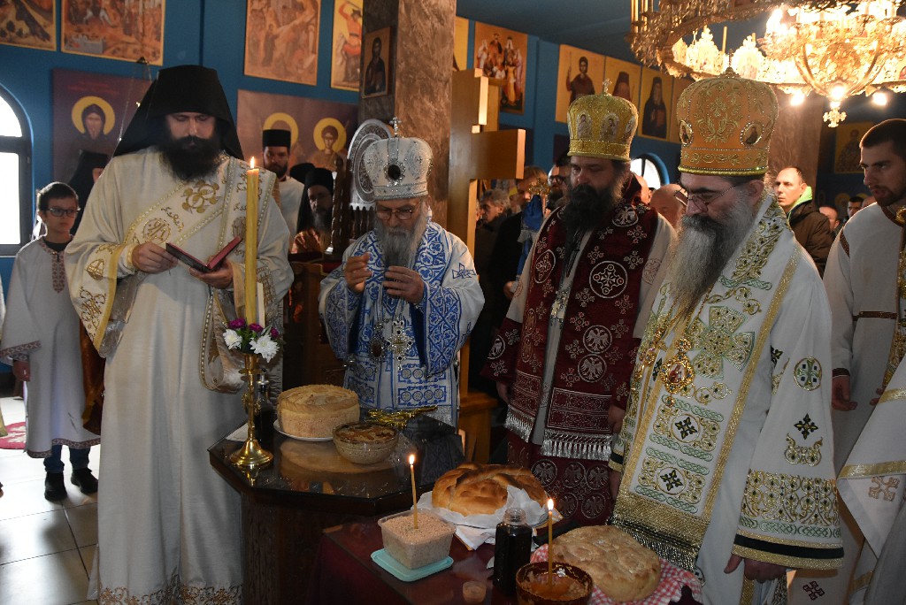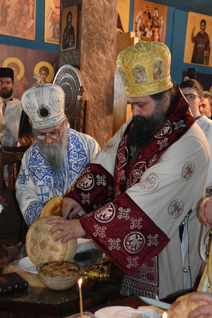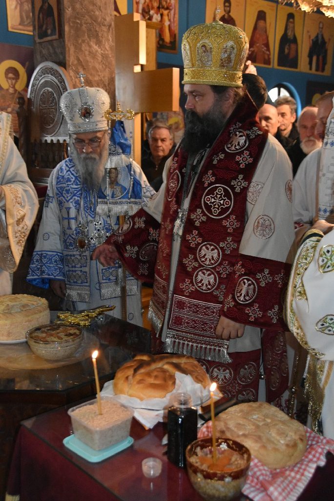 По завршетку Свете Литургије одслужен је молебан пред почетак Нове године. Након молебана Владика Ксенофонт је извршио чин резања славског колача и благосиљања жита које је у част светог Василија Великог принео Владика Наум, свечар светог Василија.