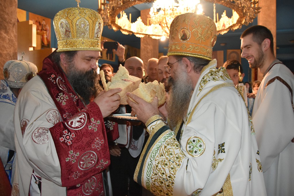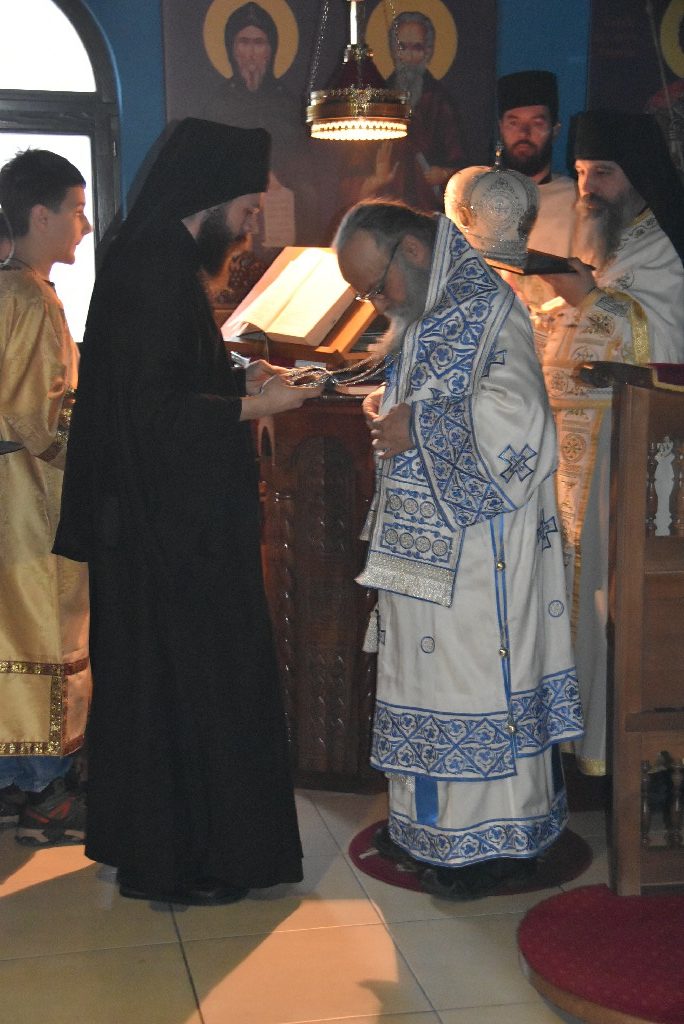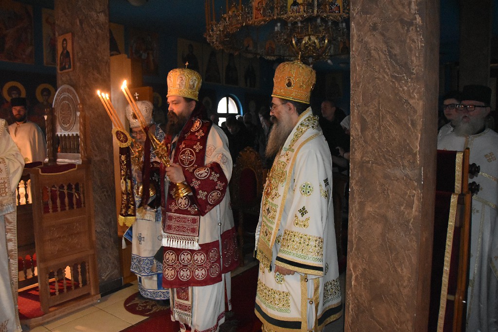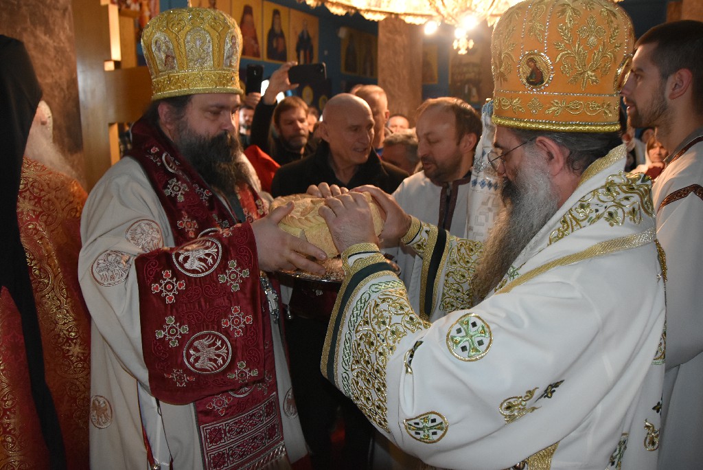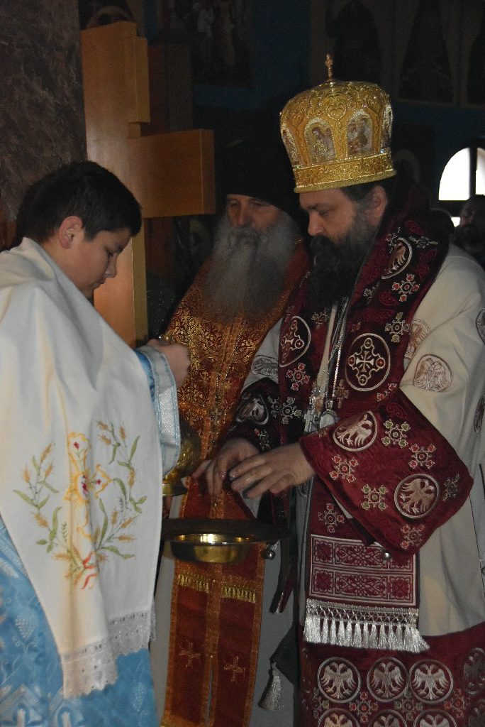 По завршетку Свете Литургије одслужен је молебан пред почетак Нове године. Након молебана Владика Ксенофонт је извршио чин резања славског колача и благосиљања жита које је у част светог Василија Великог принео Владика Наум, свечар светог Василија.